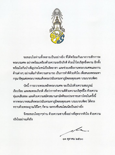 ข่าวในประเทศ นรม. กล่าวในรายการศาสตร์พระราชาว่า ในช่วงสัปดาห์หน้าจะมีพระประมุข พระราชวงศ์ และประมุขแห่งรัฐจำนวนมากจากทั่วโลกเสด็จพระราชดำเนิน เสด็จ และเดินทางมาร่วมในงานพระราชพิธีถวายพระเพลิงพระบรมศพฯ ในวันพฤหัสบดีที่ 26 ต.ค. ที่จะมาถึงนี้ ก็เป็นอีกเหตุการณ์สำคัญของประวัติศาสตร์โลก ขอเชิญชวนพี่น้องชาวไทยทุกคนได้ร่วมกันเป็นเจ้าบ้านที่ดี รักษาบรรยายความสงบเรียบร้อยและการไว้อาลัย เราทุกคนต้องช่วยกันดูแลความสะอาด ความเป็นระเบียบเรียบร้อย การเฝ้าระวังความปลอดภัยในทุกสถานที่ พร้อมใจกันต้อนรับแขกบ้านแขกเมืองในนามของพ่อหลวงไทยด้วย รมว. วธ. เป็นประธานแถลงข่าวหนังสือ “พระเสด็จสู่ฟ้า ราษฎร์ล้วนอาลัย” ซึ่งเป็น 1 […]