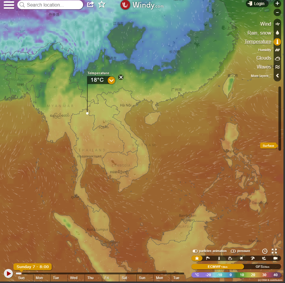 ประเทศไทยตอนบนมีอากาศเย็นกับมีหมอกในตอนเช้า โดยภาคเหนือจะมี