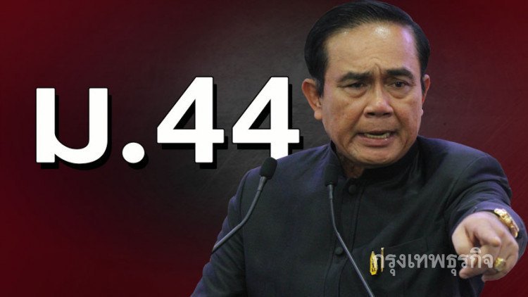 - โฆษกประจำสำนักนายกรัฐมนตรี (พล.ท.สรรเสริญฯ) แถลงผลการประชุมคณะรักษาความสงบแห่งชาติ (คสช.) ว่า นรม. ได้มอบหมายให้ รอง นรม.(นายวิษณุฯ) ทวนความในที่ประชุมเพื่อให้เข้าใจตรงกันว่าหลักเกณฑ์ในการพิจารณาออกคำสั่งโดยอาศัยอำนาจตามมาตรา 44 นั้น ประกอบด้วยหลักเกณฑ์ 4 ข้อ ดังนี้ 1) ต้องเป็นเรื่องสำคัญ คือ 1.1 ปฏิรูปประเทศ ระบบหรือโครงสร้าง 1.2 รักษาความมั่นคง 1.3 รักษาความปลอดภัยสังคมและประชาชน 1.4 แก้เรื่องเศรษฐกิจ 2) การใช้มาตรา 44 มีศักดิ์และสิทธิ์เทียบเท่ากฎหมายจึงมีผลในทางบริหารและนิติบัญญัติ โดยไม่มีผลในทางตุลาการไปตัดสินคดี 3) ใช้มาตรา 44 เมื่อจำเป็น หากออกกฎหมายปกติจะล่าช้าไม่ทันกาล และ 4) ใช้มาตรา 44 เพื่อปฐมพยาบาลและแก้ปัญหาเฉพาะกิจ เฉพาะหน้าก่อนประกาศใช้กฎหมายอื่นๆตามมาล