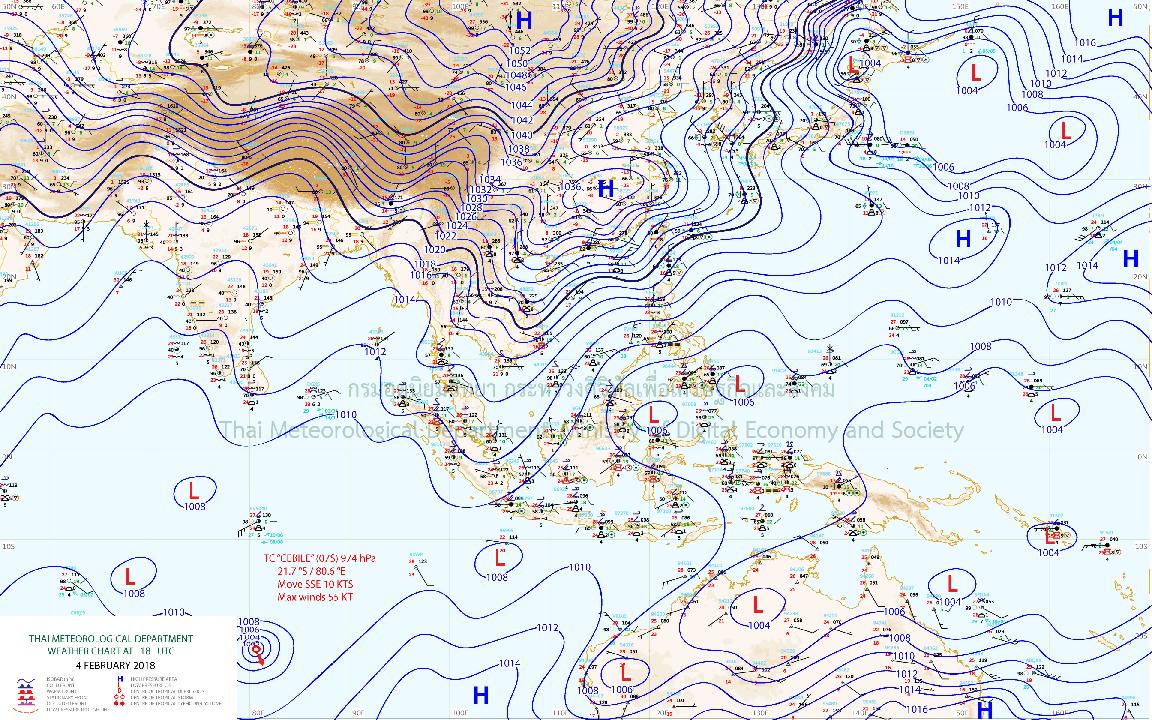 - พยากรณ์อากาศ 24 ชั่วโมงข้างหน้า ประเทศไทยตอนบนมีอากาศหนาวเย็น และอุณหภูมิจะลดลง 2 – 3 องศาเซลเซียส กับมีน้ำค้างแข็งบางพื้นที่ตามภูเขาสูงในบริเวณภาคเหนือ ขอให้ประชาชนดูแลสุขภาพเนื่องจากสภาพอากาศที่เปลี่ยนแปลงไว้ด้วย สำหรับภาคใต้มีฝนบางแห่ง ส่วนคลื่นลมบริเวณภาคใต้ตอนล่างมีกำลังแรง โดยมีคลื่นสูง 2-3 เมตร ขอให้ประชาชนที่อาศัยอยู่บริเวณชายฝั่งภาคใต้ฝั่งตะวันออกระวังอันตรายจากคลื่นลมแรงที่พัดเข้าหาฝั่ง ชาวเรือควรเดินเรือด้วยความระมัดระวังและเรือเล็กควรงดออกจากฝั่งในช่วงนี้