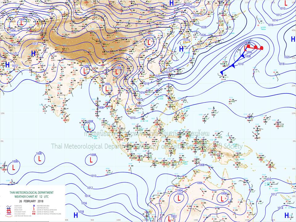 - พยากรณ์อากาศ 24 ชั่วโมงข้างหน้า บริเวณภาคเหนือ ภาคตะวันออกเฉียงเหนือ ภาคกลาง ภาคตะวันออก รวมทั้งกรุงเทพมหานครและปริมณฑลยังคงมีฝนฟ้าคะนองเกิดขึ้นได้บางพื้นที่ ทั้งนี้ สำหรับบริเวณอ่าวไทยตอนล่างมีคลื่นสูงประมาณ 2 เมตร และขอให้ระมัดระวังการเดินเรือบริเวณดังกล่าวในระยะนี้ด้วย