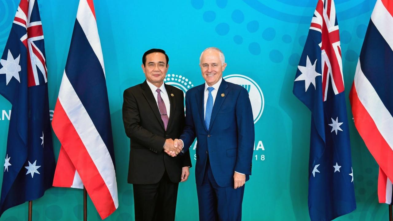 - เมื่อวันที่ 17 มี.ค. 61 ที่นครซิดนีย์ ประเทศออสเตรเลีย นรม.ได้หารือกับ นายมัลคอล์ม เทิร์นบูลล์ นรม. เครือรัฐออสเตรเลีย ก่อนเริ่มต้นการประชุมสุดยอดอาเซียน-ออสเตรเลีย สมัยพิเศษ 2018 อย่างเป็นทางการ โดยผู้นำทั้งสองเห็นว่าควรใช้โอกาสนี้ในการเปิดโฉมใหม่ของหุ้นส่วนทางยุทธศาสตร์อาเซียน-ออสเตรเลีย เพื่อยกระดับความสัมพันธ์ทางเศรษฐกิจระหว่างกัน ซึ่งไทยพร้อมที่จะผลักดันความร่วมมือให้เป็นรูปธรรมมากขึ้น นอกจากนี้ นรม. ยังได้กล่าวเชิญชวนนักลงทุนให้เข้ามาลงทุนในอีอีซี รวมทั้งขอให้ออสเตรเลียช่วยดูแลชุมชนและนักศึกษาไทยในออสเตรเลียด้วย