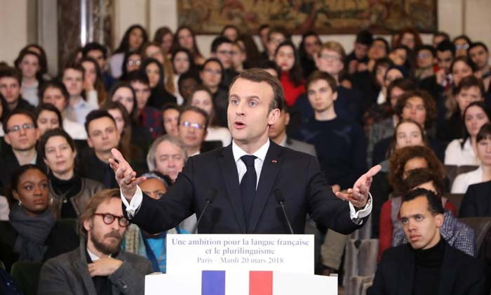 - ประธานาธิบดีเอ็มมานูเอล มาครง สาธารณรัฐฝรั่งเศส ทุ่มงบประมาณหลายล้านยูโร ในการส่งเสริมภาษาฝรั่งเศสมากขึ้นหวังให้เป็นภาษาหลักของโลก โดยจะเพิ่มการเรียน และการใช้ภาษาฝรั่งเศสบนออนไลน์ และสอนภาษาฝรั่งเศสแก่เจ้าหน้าที่ในกรุงบรัสเซลส์ซึ่งเป็นที่ตั้งของสำนักงานใหญ่สหภาพยุโรป (อียู) ซึ่งแม้จะใช้ภาษาฝรั่งเศสเป็นภาษาหลักอยู่แล้ว แต่ภายหลังประเทศในแถบยุโรปตะวันออกได้เข้ามาเป็นสมาชิกตั้งแต่ปี 2004 ทำให้เริ่มมีการใช้ภาษาอังกฤษเพิ่มขึ้น