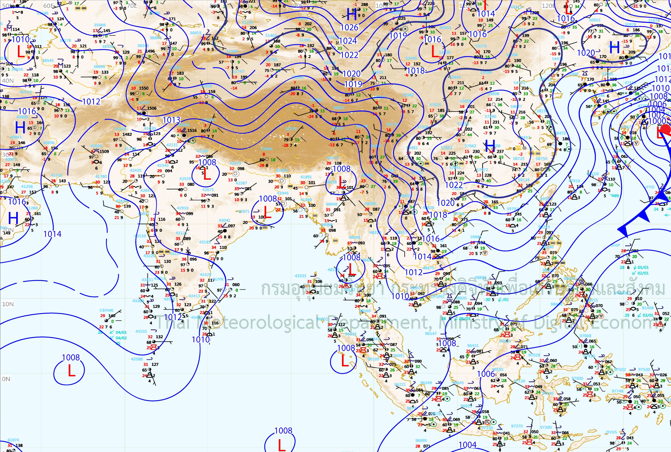 - ประเทศไทยตอนบนมีอากาศร้อนโดยทั่วไป และมีพายุฤดูร้อนเกิดขึ้นโดยมีลักษณะของพายุฝนฟ้าคะนอง ฟ้าผ่า ลมกระโชกแรง และลูกเห็บตกบางพื้นที่บริเวณภาคเหนือ ภาคตะวันออกเฉียงเหนือ ภาคตะวันออก และภาคกลาง กรุงเทพมหานครและปริมณฑล มีเมฆเป็นส่วนมาก กับมีพายุฝนฟ้าคะนอง ร้อยละ 40 ของพื้นที่ และมีลมกระโชกแรง อุณหภูมิต่ำสุด 26-27 องศาเซลเซียส อุณหภูมิสูงสุด 32-38 องศาเซลเซียส