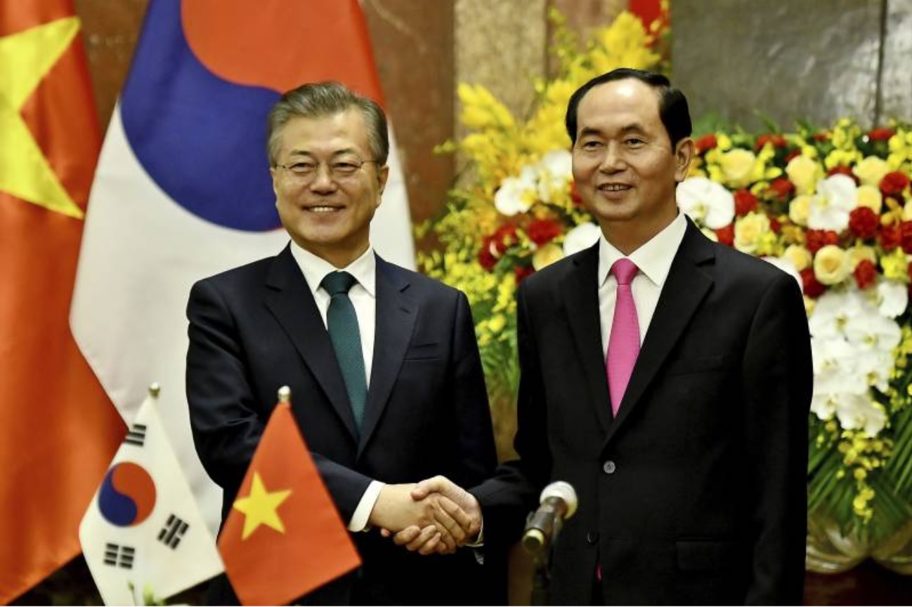 - สำนักข่าวต่างประเทศรายงานจากกรุงฮานอย เวียดนาม ว่า นายมุน แจ-อิน ปธน.เกาหลีใต้ ได้หารือระดับทวิภาคีกับ นายเจิ่น ดั่ย กว่าง ปธน.เวียดนาม ที่ทำเนียบรัฐบาลในกรุงฮานอย เมื่อวันศุกร์ที่ผ่านมา โดยทั้งสองฝ่ายได้แสดงความหวังว่าการค้าระหว่างสองประเทศจะขยายตัวเพิ่มขึ้นถึง 100,000 ล้านดอลลาร์สหรัฐ (ราว 3.12 ล้านล้านบาท) ภายในปี 63 ซึ่งปัจจุบันเกาหลีใต้ถือเป็นประเทศผู้ลงทุนรายใหญ่ที่สุดของเวียดนาม และเป็นประเทศคู่ค้ารายใหญ่อันดับ 2 โดยมูลค่าการค้าระดับทวิภาคีอยู่ที่ 61,500 ล้านดอลลาร์สหรัฐ เมื่อปีที่แล้ว (ราว 1.91 ล้านล้านบาท) นอกจากนี้ ผู้นำเวียดนามยังกล่าวเรียกร้องให้ผู้ประกอบการจากเกาหลีใต้เพิ่มการลงทุนในเวียดนามด้วย โดยเฉพาในโครงการพัฒนาระบบโครงสร้างพื้นฐาน ระบบสาธารณูปโภค และอุตสาหกรรมด้านพลังงาน