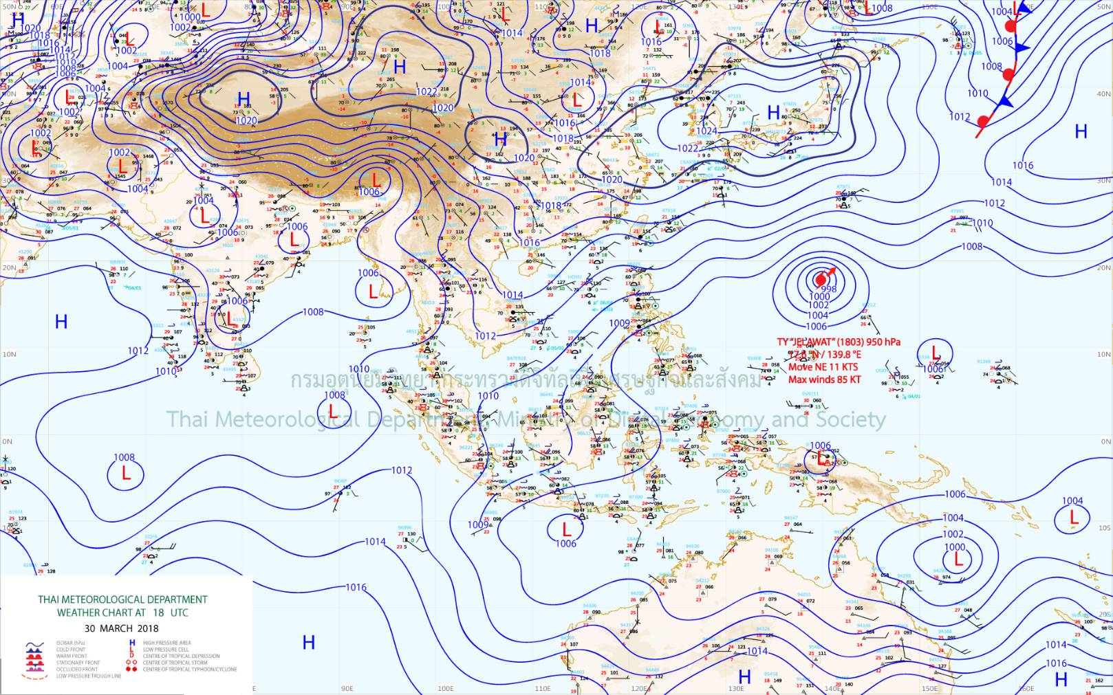 - บริเวณประเทศไทยตอนบนมีอากาศร้อน กับมีพายุฝนฟ้าคะนองและลมกระโชกแรงขึ้นบริเวณภาคเหนือ ภาคกลาง และภาคตะวันออก ส่วนภาคตะวันออกเฉียงเหนือมีฝนลดลง สำหรับภาคใต้มีฝนเพิ่มขึ้น ขอให้ประชาชนบริเวณภาคเหนือและภาคตะวันออกระมัดระวังอันตรายจากพายุฝนฟ้าคะนองและลมกระโชกแรงไว้ด้วย