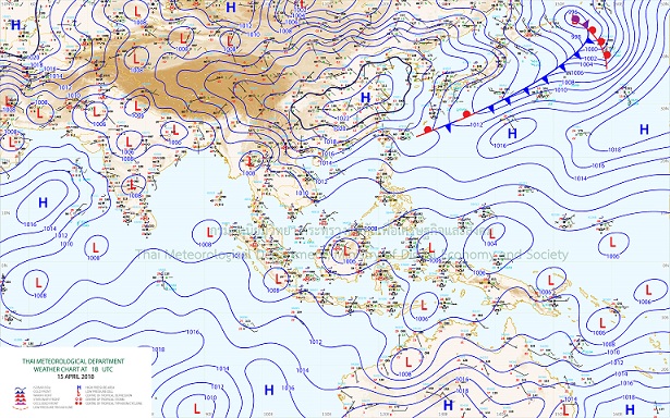 - บริเวณภาคตะวันออกเฉียงเหนือ ภาคเหนือ และภาคตะวันออกจะเกิดพายุฤดูร้อนขึ้น ในขณะที่บริเวณดังกล่าวมีอากาศร้อนถึงร้อนจัดหลายพื้นที่ ซึ่งมีลักษณะของพายุฝนฟ้าคะนอง ลมกระโชกแรง กับมีฟ้าผ่า และลูกเห็บตกบางพื้นที่ สำหรับภาคกลาง รวมทั้งกรุงเทพมหานครและปริมณฑล จะได้รับผลกระทบในวันนี้ (16 เม.ย 61) จึงขอให้ประชาชนในบริเวณดังกล่าวระวังอันตรายจากพายุฤดูร้อนที่จะเกิดขึ้น โดยหลีกเลี่ยงการอยู่ในที่โล่งแจ้ง ใต้ต้นไม้ใหญ่ และป้ายโฆษณาที่ไม่แข็งแรง รวมถึงระวังอันตรายจากฟ้าผ่า สำหรับเกษตรกรควรเตรียมการป้องกันและระวังความเสียหายที่จะเกิดต่อผลผลิตทางการเกษตรไว้ด้วย สำหรับลมตะวันออกที่พัดปกคลุมภาคใต้และอ่าวไทยจะมีกำลังแรงขึ้นในช่วงวันที่ 17-19 เมษายน 2561 ทำให้ภาคใต้มีฝนเพิ่มขึ้น ส่วนคลื่นลมบริเวณอ่าวไทยและทะเลอันดามันจะมีกำลังปานกลาง โดยบริเวณอ่าวไทยมีคลื่นสูงประมาณ 2 เมตร ขอให้ชาวเรือบริเวณดังกล่าวเดินเรือด้วยความระมัดระวังไว้ด้วย