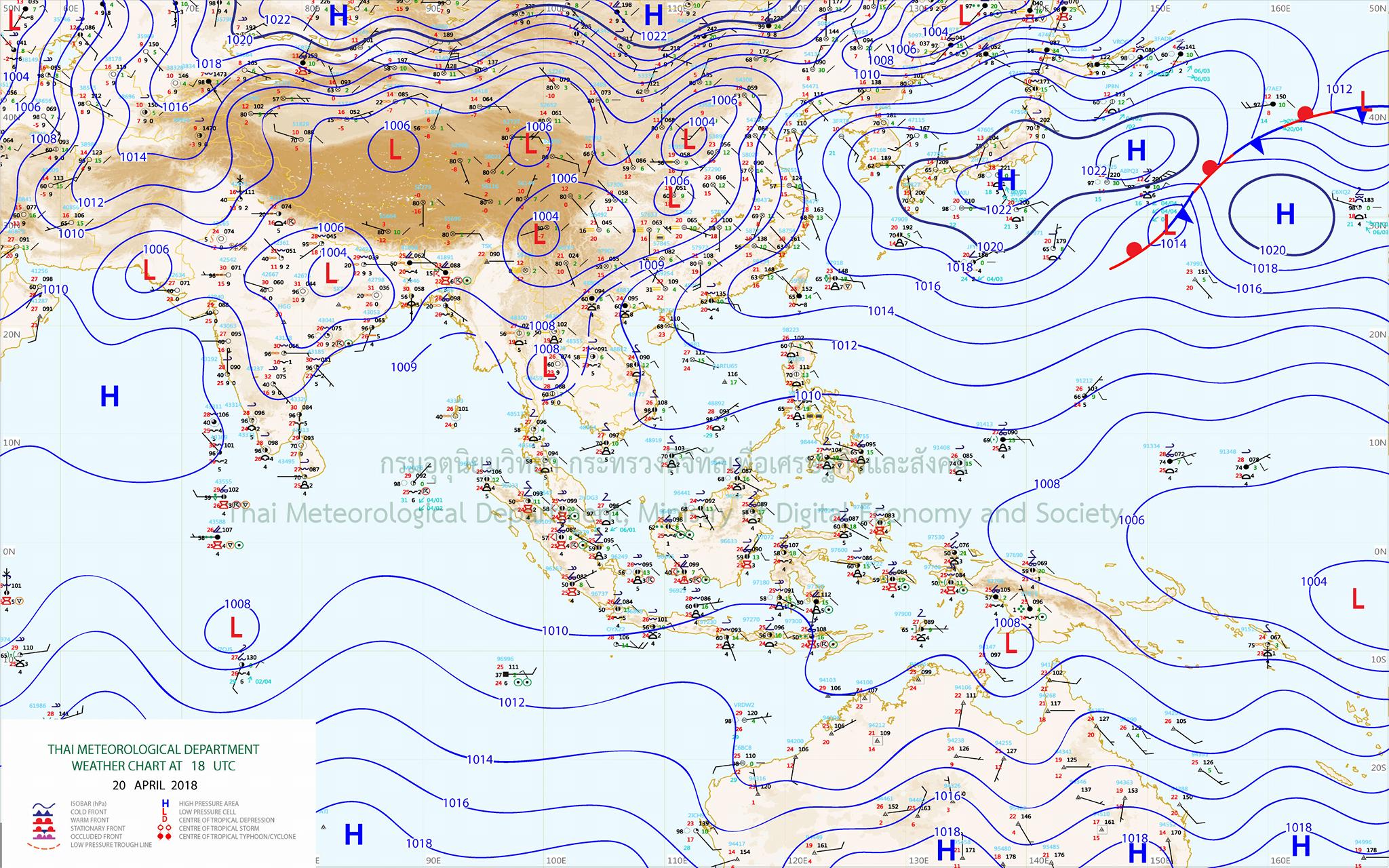 - พยากรณ์อากาศ 24 ชั่วโมงข้างหน้า บริเวณประเทศไทยตอนบนมีอุณหภูมิสูงขึ้น กับมีอากาศร้อนโดยทั่วไป และมีฝนฟ้าคะนองเกิดขื้นได้บางพื้นที่ ขอให้ประชาชนบริเวณดังกล่าวดูแลสุขภาพเนื่องจากสภาพอากาศที่ร้อนไว้ด้วย อนึ่ง ในช่วงวันที่ 24-27 เม.ย. 61 จะมีพายุฤดูร้อนเกิดขึ้นบริเวณประเทศไทยตอนบน โดยมีลักษณะของพายุฝนฟ้าคะนอง ลมกระโชกแรง ฟ้าฝ่า และมีลูกเห็บตกได้บางพื้นที่ ซึ่งจะเริ่มจากภาคตะวันออกเฉียงเหนือก่อน