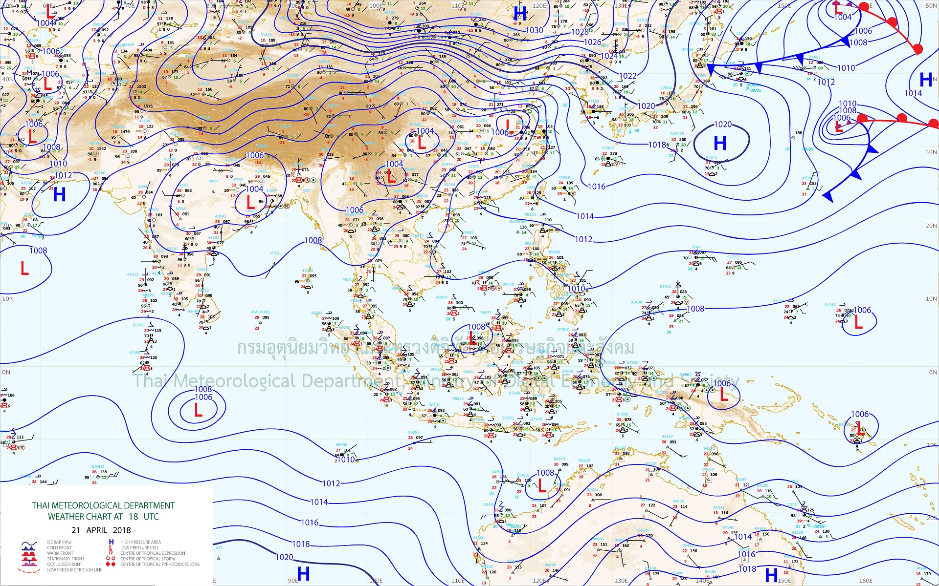 - ความกดอากาศต่ำเนื่องจากความร้อนปกคลุมประเทศไทยตอนบน ทำให้บริเวณดังกล่าวมีอากาศร้อนโดยทั่วไปและมีอากาศร้อนจัดบางพื้นที่ ในขณะที่ลมตะวันออกเฉียงใต้พัดนำความชื้นจากทะเลจีนใต้และอ่าวไทยเข้าปกคลุมประเทศไทย ทำให้บริเวณดังกล่าวมีฝนฟ้าคะนอง กรุงเทพและปริมณฑล อากาศร้อน โดยมีฝนฟ้าคะนอง ร้อยละ 10 ของพื้นที่อุณหภูมิต่ำสุด 27-29 องศาเซลเซียส อุณหภูมิสูงสุด 34-39 องศาเซลเซียส ภาคเหนือ อากาศร้อนถึงร้อนจัดบางพื้นที่ โดยมีฝนฟ้าคะนอง ร้อยละ 10 ของพื้นที่ ภาคตะวันออกเฉียงเหนือ อากาศร้อนกับมีฝนฟ้าคะนอง ภาคใต้ มีเมฆบางส่วน กับมีฝนฟ้าคะนอง ร้อยละ 10 ของพื้นที่ ทะเลมีคลื่นสูงประมาณ 1 เมตร