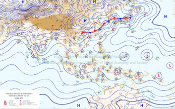 - พยากรณ์อากาศ 24 ชั่วโมงข้างหน้า บริเวณประเทศไทยตอนบนมีฝนฟ้าคะนองลดลงในระยะนี้ ส่วนภาคใต้มีฝนเพิ่มขึ้น ขอให้ประชาชนบริเวณภาคใต้ระวังอันตรายจากฝนฟ้าคะนองไว้ด้วย