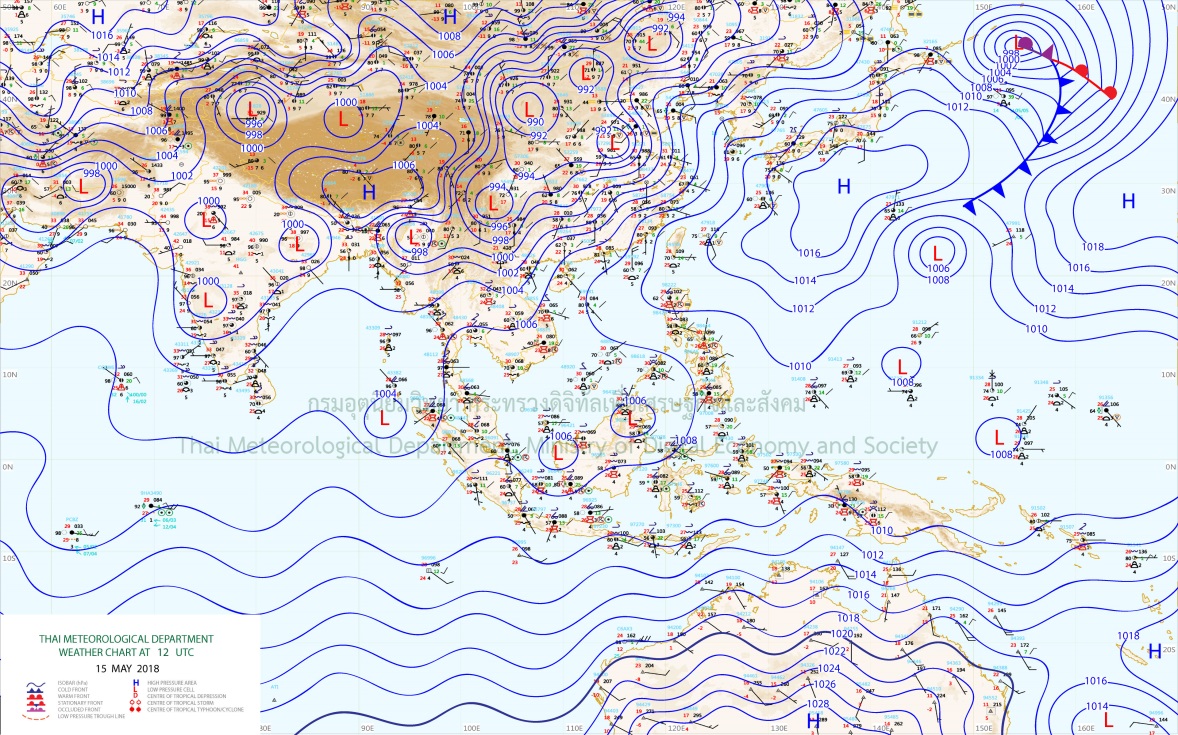 - ประเทศไทยมีฝนฟ้าคะนองเกิดขึ้น กับมีฝนตกหนักบางแห่งบริเวณภาคเหนือตอนล่าง ภาคตะวันออกเฉียงเหนือ ภาคตะวันออก ภาคกลาง และภาคใต้ตอนล่าง ขอให้ประชาชนบริเวณดังกล่าวระวังอันตรายจากฝนตกหนักและฝนที่ตกสะสมไว้ด้วย
