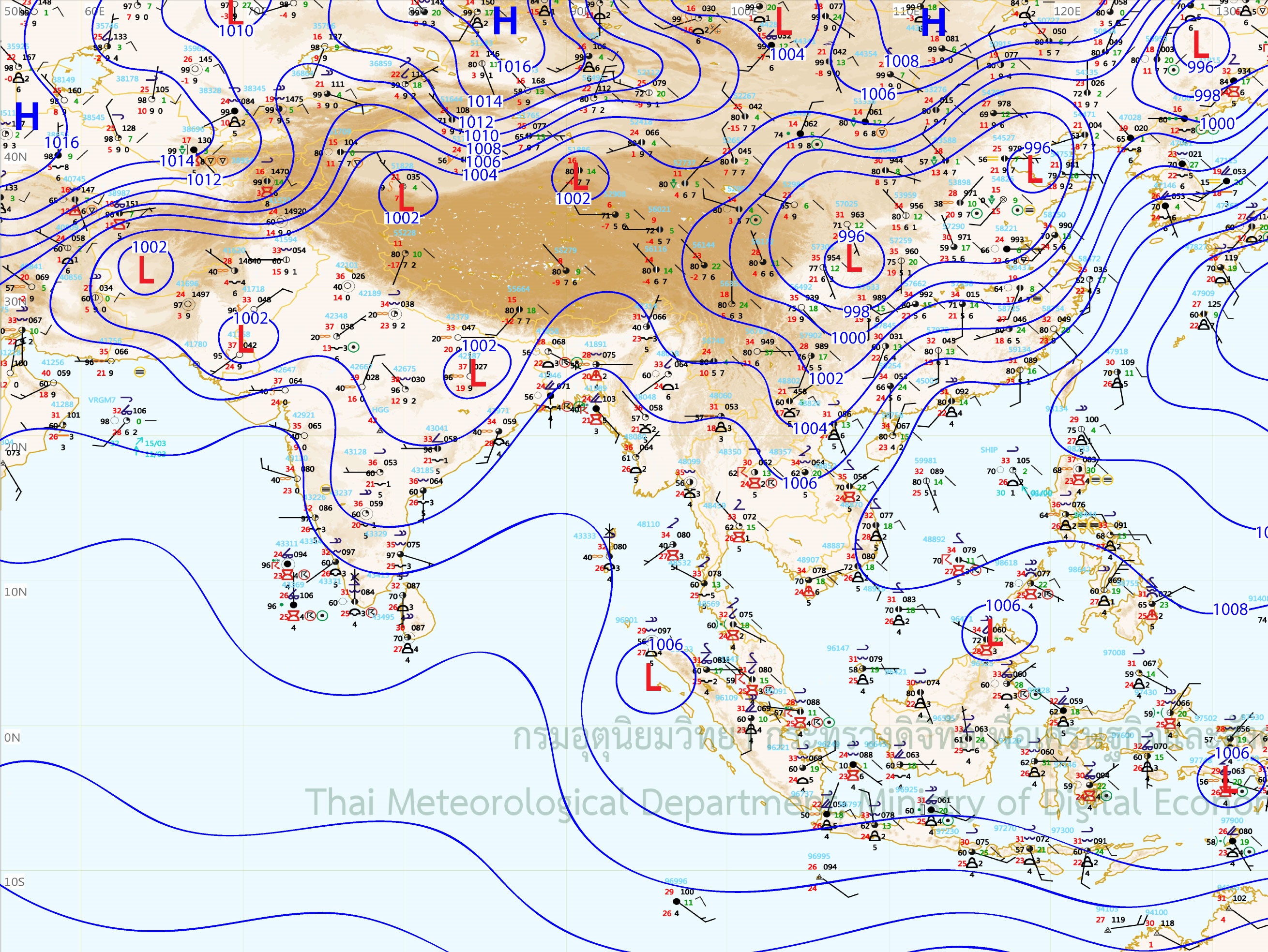 - ประเทศไทยยังคงมีฝนฟ้าคะนองบางพื้นที่ กับมีฝนตกหนักบางแห่งบริเวณภาคตะวันออก และภาคใต้ตอนล่าง ขอให้ประชาชนบริเวณดังกล่าวระวังอันตรายจากฝนตกหนักและฝนที่ตกสะสมไว้ด้วย สำหรับกรุงเทพฯ และปริมณฑล มีเมฆเป็นส่วนมาก กับมีฝนฟ้าคะนอง ร้อยละ 40 ของพื้นที่ อุณหภูมิต่ำสุด 26-28 องศาเซลเซียส อุณหภูมิสูงสุด 33-35 องศาเซลเซียส ลมตะวันออกเฉียงใต้ ความเร็ว 10-25 กม./ชม.