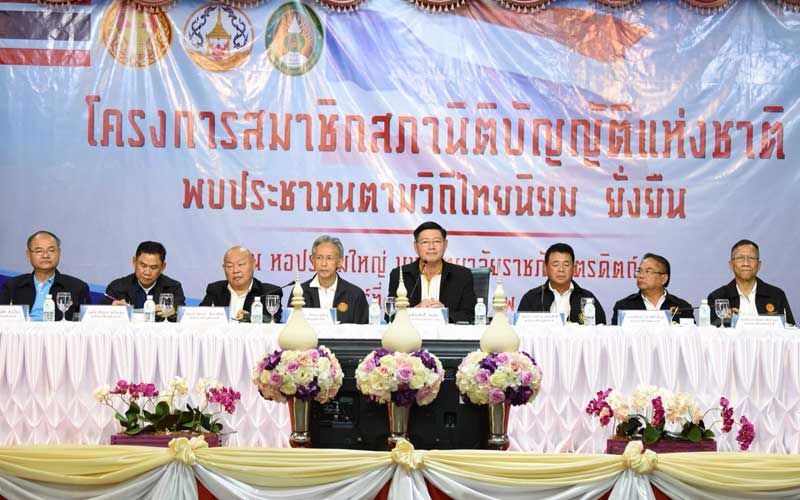 - สภานิติบัญญัติแห่งชาติ (สนช.) ลงพื้นที่รับฟังความเห็นประชาชนชาวจังหวัดอุตรดิตถ์ สุโขทัย พิษณุโลก และแพร่ ตามโครงการ “สภานิติบัญญัติแห่งชาติพบประชาชนตามวิถีไทยนิยม ยั่งยืน” โดยมีบุคลากรทางการศึกษา ผู้นำชุมชน ผู้นำท้องถิ่น สภาเด็กและเยาวชน กลุ่มสตรีจังหวัดอุตรดิตถ์ และประชาชน เดินทางมาร่วมงานประมาณ 1,100 คน โดยรองประธาน สนช. (นายพีระศักดิ์ฯ) กล่าวว่าได้ดำเนินการแก้ไขปัญหาต่าง ๆ ให้กับประชาชน อาทิ ผลักดันโครงการถนนทางลอดเพื่อลดอุบัติเหตุ รวมถึงปัญหาที่ดินทำกินที่เป็นปัญหาเรื้อรังมากว่า 30 ปี วันนี้ก็ได้รับการแก้ไขแล้ว โดยคณะรัฐมนตรีกำลังจะประกาศเรื่องการจัดสรรที่ดินทำกินให้กับประชาชนในเร็วๆนี้