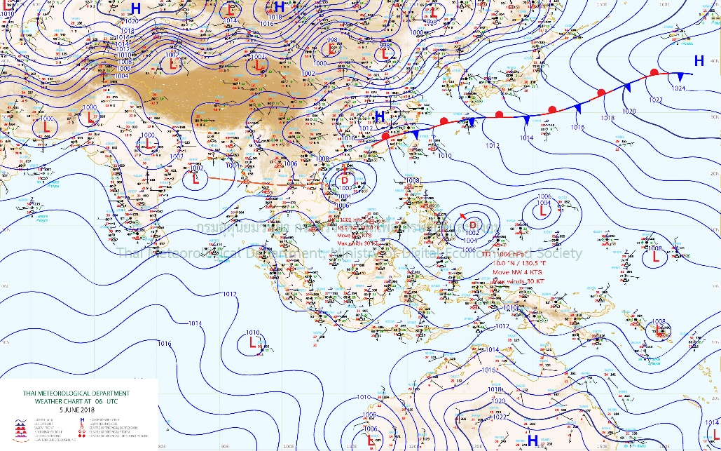 - ประเทศไทยมีฝนฟ้าคะนองกับมีฝนตกหนักบางแห่งบริเวณภาคเหนือ ภาคตะวันออกเฉียงเหนือ ภาคตะวันออก ภาคกลางและภาคใต้ ขอให้ประชาชนบริเวณดังกล่าวระวังอันตรายจากฝนที่ตกหนัก และฝนที่ตกสะสมไว้ด้วย ทะเลอันดามันมีคลื่นสูงประมาณ 2 เมตร และบริเวณที่มีฝนฟ้าคะนองคลื่นสูงมากกว่า 2 เมตร ขอให้ชาวเรือควรเดินเรือด้วยความระมัดระวัง