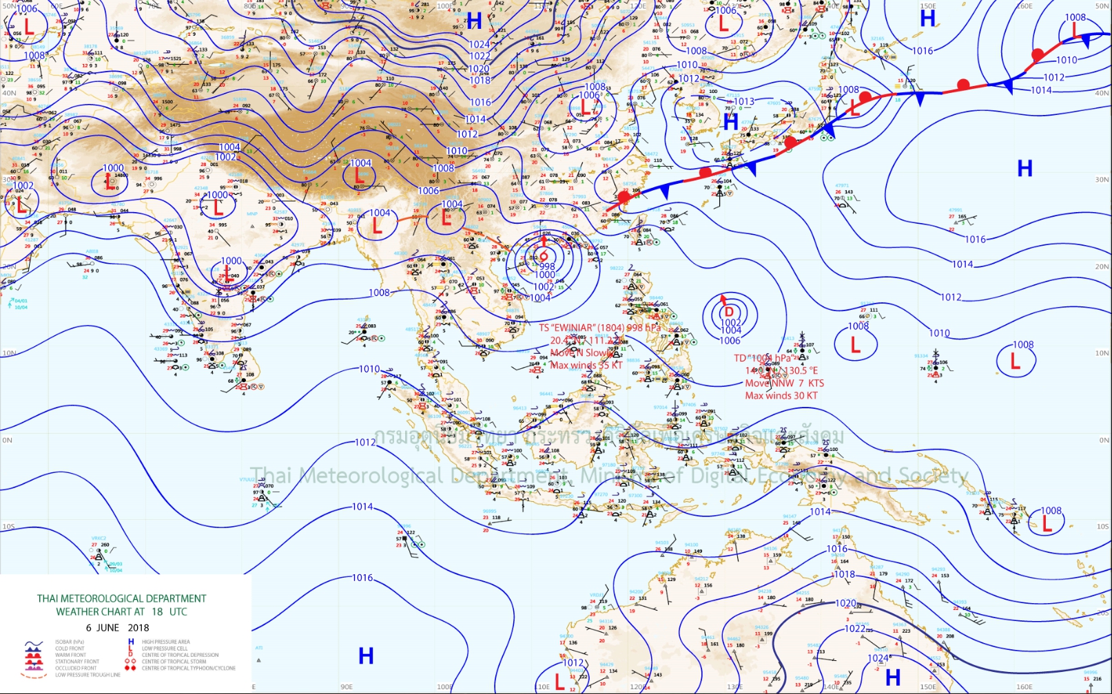 - พยากรณ์อากาศ 24 ชั่วโมงข้างหน้า ประเทศไทยมีฝนฟ้าคะนอง กับมีฝนตกหนักบางแห่งบริเวณภาคเหนือ ภาคตะวันออกเฉียงเหนือ ภาคกลาง และภาคตะวันออก ขอให้ประชาชนบริเวณดังกล่าวระวังอันตรายจากฝนที่ตกหนัก และฝนที่ตกสะสมไว้ด้วย สำหรับทะเลอันดามันมีคลื่นสูงประมาณ 2 เมตร และบริเวณที่มีฝนฟ้าคะนองคลื่นสูงมากกว่า 2 เมตร ขอให้ชาวเรือควรเดินเรือด้วยความระมัดระวัง