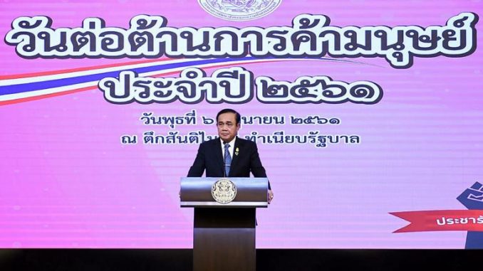 - นรม. และหัวหน้า คสช. กล่าวเปิดงานวันต่อต้านการค้ามนุษย์ประจำปี 2561 ภายใต้แนวคิด “ประชารัฐร่วมใจ ต้านภัยค้ามนุษย์” ว่า วันนี้เป็นอีกวันที่ได้ร่วมกันทำความดีและทำให้ได้รับรู้ถึงผลการปฏิบัติที่ผ่านมา ทั้งในส่วนของภาครัฐ ภาคเอกชน และประชาชนที่ร่วมทำงานต่อต้านปัญหาการค้ามนุษย์ ทั้งนี้ขอให้ทุกคนช่วยเผยแพร่ไปสู่ประชาคมโลก ซึ่งถือว่าขณะนี้เรื่องการค้ามนุษย์เป็นเรื่องสำคัญที่สุดในโลกนี้เพราะยังคงมีปัญหาเหล่านี้อยู่ ซึ่งจะเห็นว่าการทำงานใช้เวลากว่า 4 ปี ได้มีความก้าวหน้าทุกกิจกรรม ทั้งด้านกฎหมาย วิธีการการดำเนินการกับผู้ต้องหา การดูแลเหยื่อและการป้องกันปัญหาค้ามนุษย์รายใหม่ วันนี้ทำครบทุกมิติในสิ่งที่เคยเป็นปัญหา โดยเฉพาะการให้ความสำคัญเรื่องการละเมิดสิทธิมนุษยชนอย่างร้ายแรง และจะดำเนินคดีกับเจ้าหน้าที่ที่เกี่ยวข้อง และได้มุ่งมั่นแก้ปัญหาเหล่านี้มาต่อเนื่อง รวมถึงดำเนินกระบวนการยุติธรรมที่เหมาะสมและยุติธรรม และยังได้แสดงความพร้อมร่วมมือกับประชาคมโลกในการแก้ปัญหาดังกล่าว