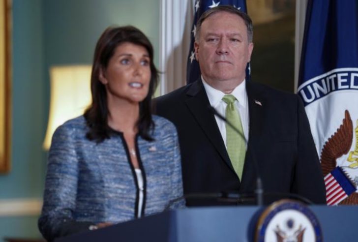 - นางนิกกี เฮลีย์ เอกอัครราชทูตสหรัฐประจำสหประชาชาติ ประกาศระหว่างการแถลงข่าวร่วมกับนายไมค์ ปอมเปโอ รัฐมนตรีต่างประเทศสหรัฐว่า สหรัฐประสงค์ที่จะถอนตัวออกจากคณะมนตรีความมั่นคงแห่งสหประชาชาติ (ยูเอ็นเอสซี) โดยให้เหตุผลว่ายูเอ็นเอสซีอาจเป็นองค์กรที่ไม่สามารถปกป้องสิทธิมนุษยชนได้ ขณะที่เจ้าชายซาอิด ราอัด ฮุสเซน ข้าหลวงใหญ่สิทธิมนุษยชนแห่งสหประชาชาติ กล่าวว่า การถอนตัวของสหรัฐออกจากยูเอ็นเอสซีเป็นเรื่องน่าผิดหวัง แต่ไม่ใช่ข่าวที่ทำให้ตกใจแต่อย่างใด