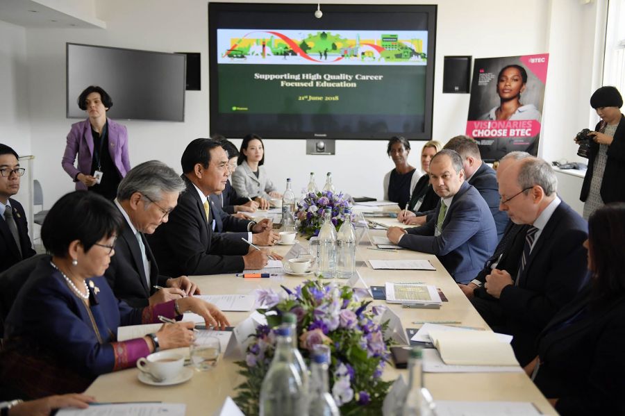 - เมื่อวันที่ 21 มิ.ย. 61 เวลา 11.25 น.ตามเวลาท้องถิ่น ณ กรุงลอนดอน สหราชอาณาจักร พลเอก ประยุทธ์ จันทร์โอชา นายกรัฐมนตรี เยี่ยมชมและดูงานด้านอาชีวศึกษา ณ บริษัท เพียร์สัน (Pearson) บริษัท Pearson เป็นบริษัทธุรกิจด้านการศึกษาชั้นนำของโลก ทั้งนี้ Pearson มีนโยบายแน่ชัดที่จะขยายธุรกิจในประเทศไทย โดยเฉพาะที่เกี่ยวข้องกับ EEC และ Thailand 4.0 โดย Pearson ได้ลงนาม MOU กับสำนักงานคณะกรรมการการอาชีวศึกษา เพื่อพัฒนาอาชีวศึกษาไทย ส่งเสริมการพัฒนาการเรียนการสอน รวมทั้งจะร่วมกับ EEC เพื่อพัฒนาคนให้กับอุตสาหกรรมใน EEC ด้วย ในการนี้ Pearson ได้บรรยายถึง Model การทำงานของบริษัทที่จะนำไปปฏิบัติในไทยเพื่อผลิตบุคลากรให้แก่ EEC โดยโมเดลดังกล่าวเป็นการทำงานระหว่าง รัฐบาล บริษัท Pearson ภาคอุตสาหกรรม และนักเรียน ให้สอดรับกัน ซึ่งโมเดลนี้ประสบความสำเร็จในสหราชอาณาจักร สามารถผลิตบุคลากรและกำลังคนให้กับประเทศในการพัฒนาประเทศด้านต่างๆ เช่น บริษัท Rolls Roys และ British Telecom และโมเดลนี้จะสร้างกำลังคนให้กับ EEC ของไทยต่อไปด้วยโดยนายกรัฐมนตรี กล่าวถึงความมุ่งหวังในการทำงานร่วมกันเพื่อการพัฒนาทรัพยากรมนุษย์ที่จะเป็นกำลังสำคัญในการพัฒนาประเทศ ซึ่งจะต้องเป็นการเรียนรู้ที่มีความพร้อมสู่การทำงาน มีวิชาชีพที่ยั่งยืนสามารถเลี้ยงดูตนเองได้ และเพียงพอต่อความต้องการ โดยเฉพาะระดับอาชีวะศึกษา ทั้งการถ่ายทอดเทคโนโลยี และการฝึกงานในสถานที่จริง มุ่งให้คนพื้นที่นำความรู้กลับไปพัฒนาท้องถิ่น ลดการกระจุกตัวในเมืองใหญ่ และช่วงท้ายนายกรัฐมนตรี กล่าวถึงการพัฒนาที่จะต้องดำเนินการควบคู่กันไปทั้งโครงการพื้นฐาน และทรัพยากรบุคคล หากโครงสร้างพื้นฐานดีแต่บุคลากรไม่ดีจะสูญเปล่า ต้องมีการเชื่อมโยงที่ไร้รอยต่อ และสร้างหลักคิดให้คนไทย ที่มิใช่ด้านวิชาการเพียงอย่างเดียว