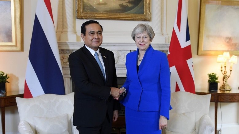 - ที่ทำเนียบนายกรัฐมนตรีสหราชอาณาจักร พล.อ.ประยุทธ์ จันทร์โอชา นายกรัฐมนตรี ได้พบหารือกับนางเทรีซา เมย์ (Theresa May) นายกรัฐมนตรีสหราชอาณาจักร ในโอกาสเดินทางเยือนสหราชอาณาจักรทั้งนี้ พล.ท. วีรชน สุคนธปฏิภาค รองโฆษกประจำสำนักนายกรัฐมนตรี เปิดเผยสาระสำคัญการหารือว่า นายกรัฐมนตรีขอบคุณที่รัฐบาลอังกฤษให้การต้อนรับการในเยือนครั้งนี้ โดยนายกรัฐมนตรีได้ชื่นชมนางเทรีซา เมย์ ในการเป็นผู้นำที่เข้มแข็งในการเจรจาให้สหราชอาณาจักรออกจากสหภาพยุโรปด้วยเงื่อนไขที่ดีที่สุด รวมถึงนโยบาย Global Britain ที่ยึดมั่นในการค้าเสรี และเป็นโอกาสดี ที่สหราชอาณาจักรจะเพิ่มพูนปฏิสัมพันธ์ทางการค้ากับประเทศต่างๆ ทั้งในและนอกยุโรป พร้อมชื่นชมที่สหราชอาณาจักรให้ความสำคัญต่อการรักษาความมั่นคงและความสงบระหว่างประเทศ ซึ่งเป็นเรื่องที่ไทยให้ความสำคัญเช่นกันทางด้านนางเทรีซา เมย์ กล่าวว่า ได้ติดตามพัฒนาการทางการเมืองและเศรษฐกิจของไทยอย่างใกล้ชิด และมั่นใจว่าไทยกำลังเดินทางสู่ประชาธิปไตยที่มั่นคง ยั่งยืน รวมทั้งเล็งเห็นถึง ความสำคัญความสัมพันธ์ระหว่างไทยและสหราชอาณาจักร เนื่องด้วยประเทศไทยมีศักยภาพและมีขนาดทางเศรษฐกิจใหญ่เป็นอันดับ 2 ของภูมิภาคอาเซียน พร้อมที่จะเป็นประตูการค้าสู่ภูมิภาค และดำเนินความสัมพันธ์เชิงหุ้นส่วนทางยุทธศาสตร์ระหว่างกัน โดยจะดำเนินการเจรจาเกี่ยวกับการเปิดการค้าเสรี (FTA) ไทย-สหราชอาณาจักร ตลอดจนความเชื่อมั่นที่มีต่อนโยบาย Thailand 4.0 และยินดีสนับสนุนให้ภาคเอกชนอังกฤษร่วมลงทุนในโครงการพัฒนาระเบียงเศรษฐกิจภาคตะวันออก (EEC)