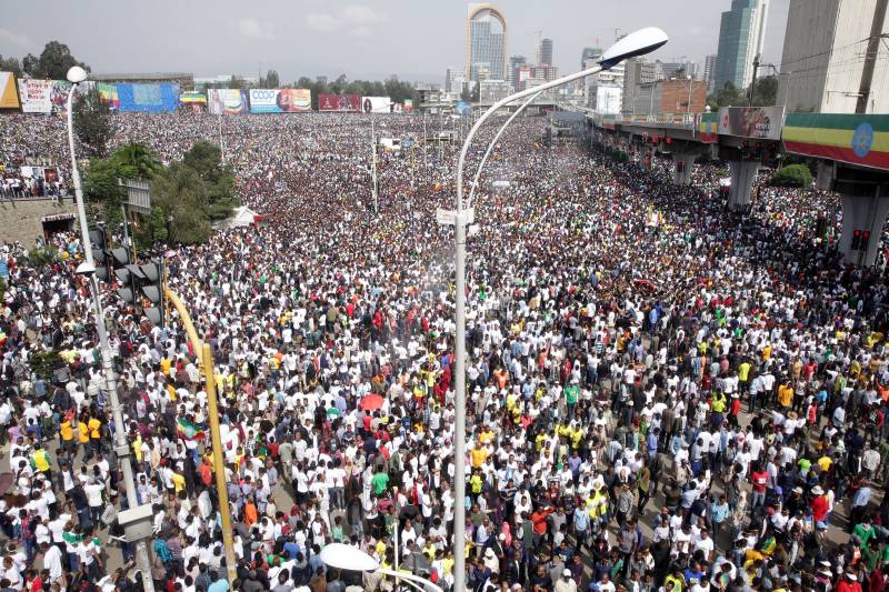 สำนักข่าวต่างประเทศรายงานจากกรุงแอดดิสอาบาบา ประเทศเอธิโอเปียว่า มีประชาชนหลายหมื่นคนออกมาเดินขบวนเพื่อแสดงพลังประชาชนสนับสนุนนายอาบิฟ อาเหม็ด นายกรัฐมนตรีแห่งเอธิโอเปีย ในกรุงแอดดิสอาบาบา เมื่อวันเสาร์ที่ 23 มิ.ย. และยังมีการกล่าวปราศรัยต่อที่ชุมนุมเป็นครั้งแรกในเมืองหลวงของเอธิโอเปียของนายกรัฐมนตรีอาบิฟนับตั้งแต่เข้ารับตำแหน่งเมื่อเดือนเมษายนที่ผ่านมา หลังจากนายกรัฐมนตรีอาบิฟกล่าวปราศรัยเสร็จสิ้นก็ได้เกิดเสียงระเบิดดังขึ้นมากลางฝูงชน และนายกรัฐมนตรีอาบิฟก็ถูกนำออกไปจากเวทีในทันที หัวหน้าสำนักงานนายกรัฐมนตรีแห่งเอธิโอเปียระบุว่า มีผู้ได้รับบาดเจ็บ 83 คน ในจำนวนนี้อาการสาหัส 6 คน แต่ไม่มีผู้เสียชีวิต แม้รายงานก่อนหน้านี้ระบุว่ามีผู้เสียชีวิตหลายคน ส่วนตำรวจอาวุโสของเอธิโอเปียระบุว่า มีผู้ได้รับบาดเจ็บราว 100 คน ต่อมากระทรวงสาธารณสุข เอธิโอเปีย แถลงว่าในเหตุการณ์นี้มีผู้เสียชีวิต 1 รายและผู้บาดเจ็บรวม 154 คน ในจำนวนนี้บาดเจ็บสาหัส 10 คน