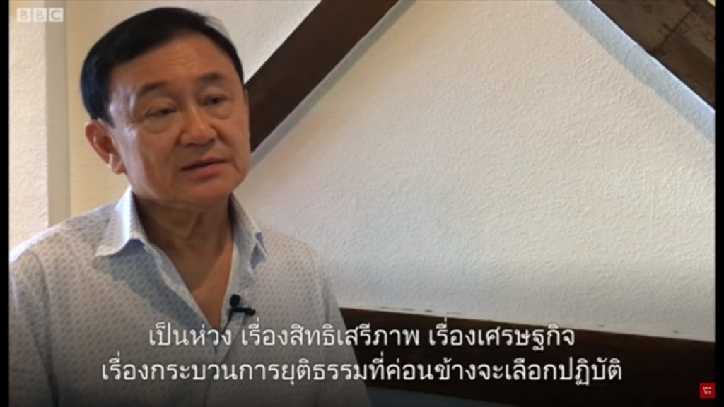 เว็บไซต์บีบีซีไทย เผยแพร่คลิปสัมภาษณ์ของ นายทักษิณ ชินวัตร อดีตนายกรัฐมนตรี เพิ่มเติมผ่านยูทูปความยาวกว่า 12 นาที ซึ่งเป็นการให้สัมภาษณ์ หลังการฉลองวันเกิดให้ นางสาวยิ่งลักษณ์ ชินวัตร อดีตนายกรัฐมนตรี เมื่อวันที่ 21 มิ.ย.ที่ผ่านมา โดยสัมภาษณ์ให้ความเป็นห่วงถึงเรื่องสิทธิเสรีภาพ เศรษฐกิจ และกระบวนการยุติธรรมในประเทศไทย และได้ให้ความเห็นเกี่ยวกับการเดินทางเยือนยุโรปของคณะรัฐบาลไทยว่า การที่ต่างชาติให้การต้อนรับแม้จะเป็นรัฐบาลที่ไม่ได้มาจากการเลือกตั้ง ถือเป็นเรื่องปกติ เพราะต่างชาติมองถึงประโยชน์ของชาติตนเป็นหลัก และนอกจากนั้นยังกล่าวถึงความเป็นไปได้ถึงการกลับมาลงเล่นการเมืองว่า มีความเป็นไปได้เพราะตนมีอายุน้อยกว่ามหาเธร์ นายกรัฐมนตรีประเทศมาเลเซียถึง 23 ปี หากร่างกายยังแข็งแรงก็สามารถทำได้