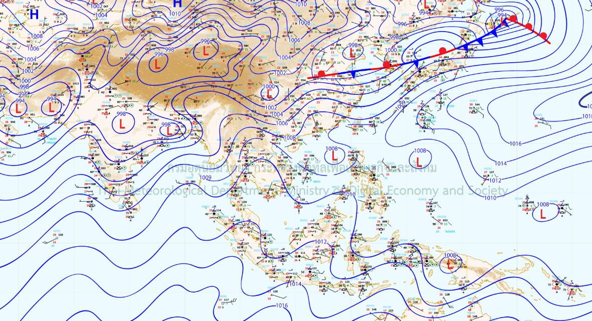 - ภาคเหนือและภาคตะวันออกเฉียงเหนือ มีเมฆมาก ประกอบกับมีฝนฟ้าคะนองร้อยละ 70 ของพื้นที่ และมีฝนตกหนักบางแห่ง ภาคใต้ มีมีเมฆเป็นส่วนมาก กับมีฝนฟ้าคะนอง ร้อยละ 40 ของพื้นที่ ทะเลมีคลื่นสูงประมาณ 1 เมตร ห่างจากฝั่งคลื่นสูง 1-2 เมตร ภาคกลาง กรุงเทพมหานครและปริมณฑล มีเมฆเป็นส่วนมาก กับมีฝนฟ้าคะนองร้อยละ 60 ของพื้นที่ และมีฝนตกหนักบางแห่ง