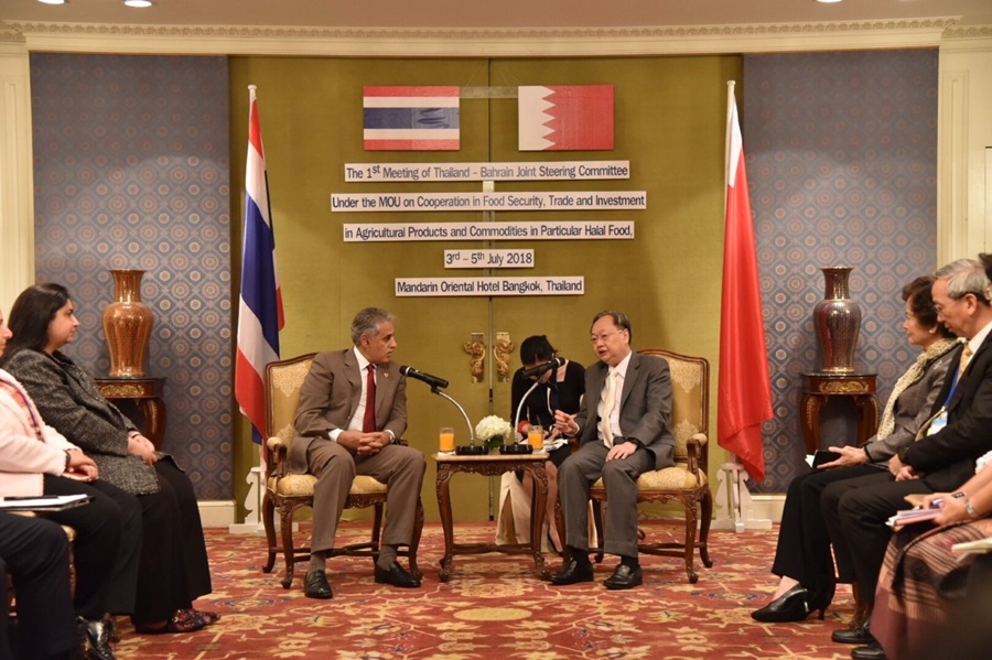 - นายสนธิรัตน์ สนธิจิรวงศ์ รมว.พณ. เปิดเผยภายหลังการหารือกับ นายซาเยด บิน ราชิด อัล ซายานี รัฐมนตรีกระทรวงอุตสาหกรรมการค้าและการท่องเที่ยวของบาห์เรน ในการประชุมคณะกรรมการอำนวยการร่วม(JSC) ระหว่างไทยกับบาห์เรนว่า ไทยได้แสดงความพร้อมในการเป็นครัวของโลกที่เป็นแหล่งผลิตสินค้าเกษตรและอาหารฮาลาล เพื่อป้อนความต้องการให้กับบาห์เรนได้ตามความต้องการ ทั้งสินค้าข้าว ผักและ ผลไม้สด อาหารแปรรูป และสินค้าฮาลาล นอกจากนี้ ไทยได้ขอให้บาห์เรนพิจารณาจัดทำข้อตกลงยอมรับร่วม (เอ็มอาร์เอ) ด้านมาตรฐานสินค้าฮาลาลระหว่างหน่วยงานที่เกี่ยวข้องของทั้งสองประเทศ เพื่อช่วยอำนวยความสะดวกในด้านการค้าและการลงทุนระหว่างกันในอุตสาหกรรมฮาลาลด้วย