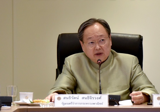 - รมว.พณ. (นายสนธิรัตน์ฯ) เปิดเผยว่า ในช่วงเดือน มิ.ย. – ก.ค. 61 พณ. ได้มอบหมายให้สำนักงานพาณิชย์จังหวัดทั่วประเทศ 76 จังหวัด ร่วมมือกับ กษ. ลงพื้นที่ทำการฝึกอบรมความรู้ให้แก่เกษตรกรรายย่อยภายใต้โครงการไทยนิยมยั่งยืน เพื่อสร้างทักษะและส่งเสริมการวางแผนการเพาะปลูกสินค้าเกษตรให้ตรงตามความต้องการของตลาดตามนโยบายการตลาดนำการผลิตที่ พณ. ส่งเสริม ซึ่งจะเป็นการป้องกันปัญหาผลผลิตล้นตลาดและราคาตกต่ำ ทำให้เกษตรกรมีรายได้สูงขึ้น รวมทั้งยังได้มอบหมายให้สำนักงานพาณิชย์เร่งขับเคลื่อนการรับสมัครร้านค้ารายย่อยให้เข้าร่วมโครงการร้านค้าธงฟ้าประชารัฐที่ใช้แอปพลิเคชัน “ถุงเงินประชารัฐ” รับชำระค่าสินค้าจากบัตรสวัสดิการแห่งรัฐ โดยตั้งเป้าให้ได้ 100,000 ร้านค้า เพื่อช่วยในการลดภาระค่าครองชีพให้แก่ผู้ถือบัตร เพราะจะได้มีทางเลือกในการซื้อสินค้าเพิ่มมากขึ้น ทั้งการซื้อสินค้าอุปโภคบริโภคในร้านค้าธงฟ้าประชารัฐเดิมที่มีอยู่ 4 หมื่นแห่ง และร้านค้ารายย่อยที่รับชำระค่าสินค้าผ่านแอปฯ