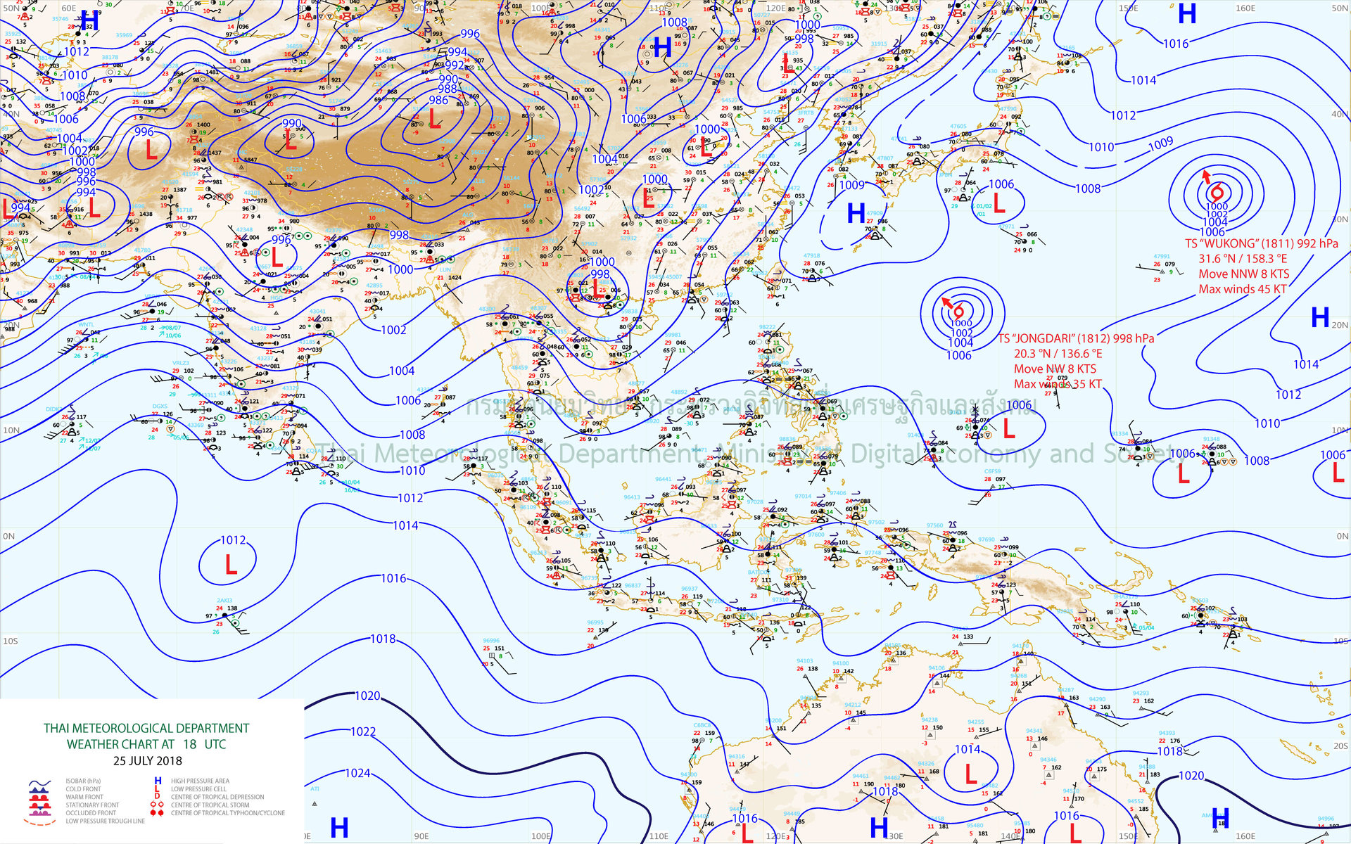 - บริเวณภาคเหนือและภาคตะวันออกเฉียงเหนือ ยังคงมีการกระจายของฝนมากกว่าภาคอื่น ๆ มีฝนตกหนักบางแห่ง สำหรับ ภาคกลาง ภาคใต้ รวมทั้งกรุงเทพมหานครและปริมณฑลมีปริมาณฝนลดลงในระยะนี้ ขอให้ประชาชนบริเวณภาคเหนือและภาคตะวันออกเฉียงเหนือระวังผลกระทบจากฝนตกหนักและฝนตกสะสมที่ทำให้เกิดน้ำท่วมฉับพลันและน้ำป่าไหลหลากไว้ด้วย ส่วนคลื่นลมบริเวณทะเลอันดามันตอนบนมีคลื่นสูงประมาณ 2 เมตร บริเวณที่มีฝนฟ้าคะนองคลื่นสูงมากกว่า 2 เมตร ขอให้ชาวเรือเดินเรือด้วยความระมัดระวัง อนึ่ง ในช่วงวันที่ 26-30 ก.ค. มรสุมตะวันตกเฉียงใต้กำลังปานกลางที่พัดปกคลุมทะเลอันดามัน ประเทศไทย และอ่าวไทย จะมีกำลังแรงขึ้น ลักษณะเช่นนี้ทำให้คลื่นลมบริเวณทะเลอันดามันและอ่าวไทยตอนบนมีกำลังแรงขึ้น โดยบริเวณทะเลอันดามันและอ่าวไทยตอนบนมีคลื่นสูง 2-3 เมตร บริเวณที่มีฝนฟ้าคะนองคลื่นสูงมากกว่า 3 เมตร ขอให้ชาวเรือเดินเรือด้วยความระมัดระวังและเรือเล็กควรงดออกจากฝั่งในช่วงเวลาดังกล่าวไว้ด้วย