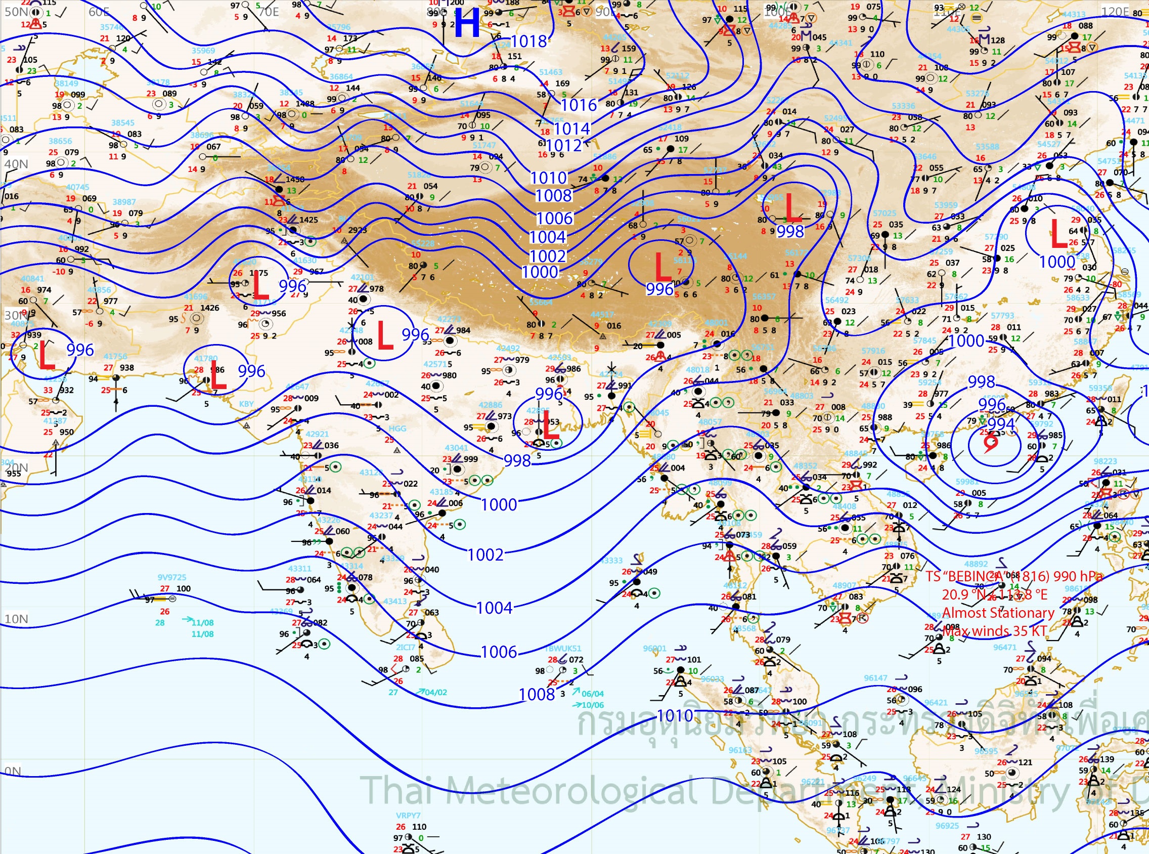 - ประเทศไทยยังคงมีฝนฟ้าคะนองหลายพื้นที่ กับมีฝนตกหนักบางแห่งบริเวณภาคเหนือ ภาคตะวันออกเฉียงเหนือ ภาคตะวันออก และภาคใต้ฝั่งตะวันตก ขอให้ประชาชนระวังอันตรายจากฝนตกหนัก และฝนที่ตกสะสม อาจทำให้เกิดน้ำท่วมฉับพลัน น้ำป่าไหลหลากไว้ด้วย สำหรับทะเลอันดามันมีคลื่นสูง 2-4 เมตร และบริเวณที่มีฝนฟ้าคะนองทะเลมีคลื่นสูงมากกว่า 4 เมตร ส่วนอ่าวไทยตอนบนมีคลื่นสูง 2-3 เมตร ขอให้ชาวเรือเดินเรือด้วยความระมัดระวังและเรือเล็กควรงดออกจากฝั่งตลอดช่วง ส่วนกรุงเทพมหานครและปริมณฑล มีเมฆเป็นส่วนมาก กับมีฝนฟ้าคะนอง ร้อยละ 40 ของพื้นที่ ส่วนมากในช่วงบ่ายถึงค่ำ