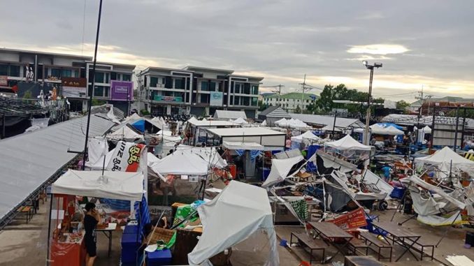 อิทธิพลพายุโซนร้อนเบบินคาทำให้เกิดวาตภัยพัดถล่มตลาดยามเย็น เขตเทศบาลนครสมุทรสาคร ส่งผลให้มีผู้เสียชีวิต 1 ราย เนื่องจากถูกลมพายุพัดลอยขึ้นจากเครื่องเล่นบ้านลมตกทะลุหลังคาร้านอาหารบริเวณใกล้เคียง ภายหลังพายุสงบลงพบว่าตลาดดังกล่าวได้รับความเสียหายอย่างหนัก และนอกจากนั้น ในพื้นที่ใกล้เคียงยังพบแผ่นเหล็กหลังคาอาคารพาณิชย์ที่ถูกพัดพังเสียหาย สร้างความเสียหายให้ทรัพย์สินและตัวอาคารเป็นอย่างหนัก