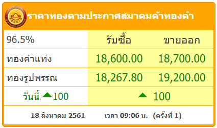 ตลอดช่วงสัปดาห์ที่ผ่านมาราคาทองคำปรับตัวลงต่อเนื่องเป็นผลจากค่าเงินดอลลาร์สหรัฐที่อ่อนตัวลง ส่งผลให้ราคาทองคำในประเทศปรับตัวลงต่ำสุดในรอบ 2 ปี 8 เดือน เนื่องจากปัญหาความขัดแย้งทางการเมืองระหว่างสหรัฐและตุรกี ซึ่งลุกลามไปเป็นข้อขัดแย้งทางเศรษฐกิจ ส่งผลให้ค่าเงินของตุรกีลดลงกว่า 40% สร้างความวิตกเป็นวงกว้างส่งผลกระทบไปทั่วโลก อย่างไรก็ตาม ในวันที่ 18 ส.ค. 61 ที่ผ่านมา ราคาทองคำปรับตัวขึ้น 100 บาท เนื่องจากนักลงทุนเริ่มคลายความกังวลเกี่ยวกับสถานการณ์ดังกล่าว
