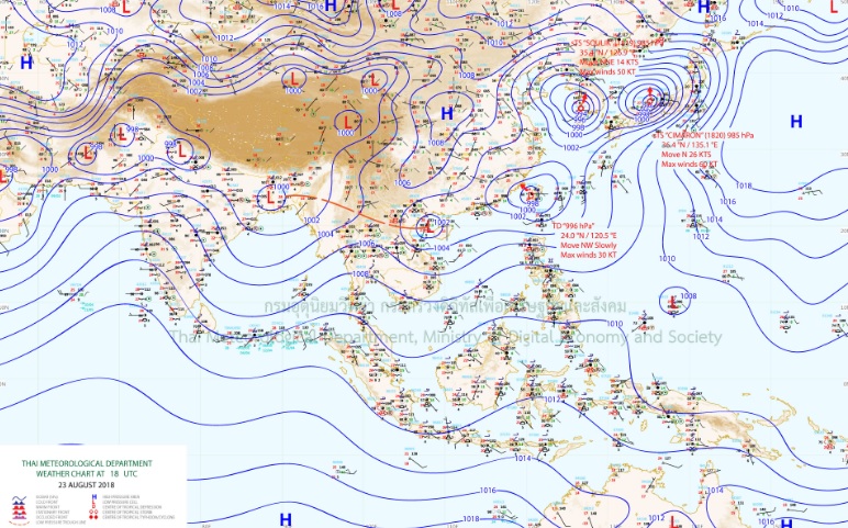 - ภาคเหนือ มีเมฆเป็นส่วนมาก กับมีฝนฟ้าคะนอง ร้อยละ 70 ของพื้นที่ และมีฝนตกหนักบางแห่ง ภาคใต้ มีเมฆเป็นส่วนมาก กับมีฝนฟ้าคะนอง ร้อยละ 60 ของพื้นที่ และมีฝนตกหนักบางแห่ง บริเวณจังหวัดสงขลา ปัตตานี ยะลา และนราธิวาส ภาคกลาง มีเมฆเป็นส่วนมาก กับมีฝนฟ้าคะนอง ร้อยละ 60 ของพื้นที่ ส่วนมากบริเวณจังหวัดราชบุรี กาญจนบุรี อุทัยธานี ชัยนาท และนครสวรรค์ กรุงเทพฯ และปริมณฑล มีเมฆเป็นส่วนมาก กับมีฝนฟ้าคะนอง ร้อยละ 60 ของพื้นที่ อุณหภูมิต่ำสุด 26-27 องศาเซลเซียส อุณหภูมิสูงสุด 32-35 องศาเซลเซียส