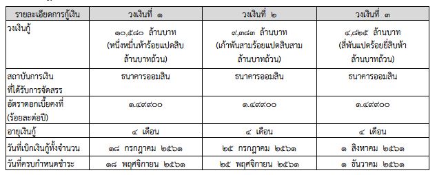 - เว็บไซต์ราชกิจจานุกเบกษาเผยแพร่ประกาศกระทรวงการคลัง เรื่อง ผลการกู้เงินระยะสั้นโดยการออกตั๋วสัญญาใช้เงินเพื่อการบริหารหนี้ ในปีงบประมาณ พ.ศ. 2561 ครั้งที่ 1 เพื่อให้เป็นไปตามความในมาตรา 16 วรรคหนึ่ง แห่งพระราชบัญญัติการบริหารหนี้สาธารณะพ.ศ. 2548 และกฎกระทรวงกาหนดหลักเกณฑ์ วิธีการ และเงื่อนไขในการออก การซื้อขายการโอน และการใช้ตราสารหนี้เป็นหลักประกัน พ.ศ. 2550 กระทรวงการคลังขอประกาศให้ทราบโดยทั่วกันว่ากระทรวงการคลัง ดำเนินการกู้เงินเพื่อนามาปรับโครงสร้างหนี้ตั๋วเงินคลัง โดยการออกตั๋วสัญญาใช้เงิน (PN) โดยมีสาระสาคัญและเงื่อนไขของการกู้เงิน ดังนี้ 1. กระทรวงการคลังได้ดำเนินการกู้เงินระยะสั้น โดยวิธีการออก PN เพื่อนำมาใช้ ในการปรับโครงสร้างหนี้ตั๋วเงินคลังที่ครบกำหนด รายละเอียดการกู้ เงินวงเงินที่ 1 เงินกู้ 10,580 ล้านบาท วงเงินที่ 2 เงินกู้ 9,383 ล้านบาท วงเงินที่ 3 เงินกู้ 4,825 ล้านบาท 2.การชำระดอกเบี้ย กระทรวงการคลังจะชำระพร้อมต้นเงินกู้ตามตั๋วสัญญาใช้เงินในวันที่ไถ่ถอน 3.การชำระคืนต้นเงินกู้ กระทรวงการคลังสามารถชำระคืนต้นเงินกู้ก่อนครบกำหนดได้ ทั้งจำนวนหรือบางส่วนก็ได้ 4.ไม่มีค่าธรรมเนียมและค่าใช้จ่ายใด ๆ