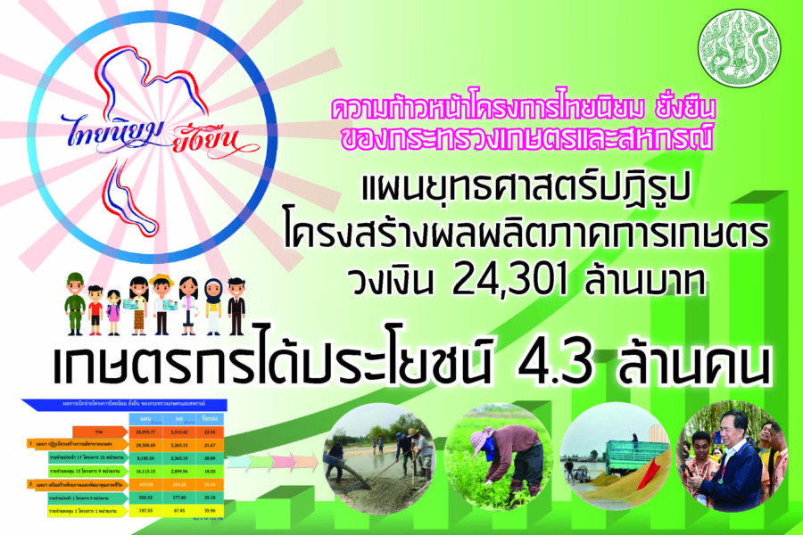 พล.อ. อนุพงษ์ เผ่าจินดา รัฐมนตรีว่าการกระทรวงมหาดไทย ในฐานะเลขานุการคณะกรรมการอำนวยการขับเคลื่อนการพัฒนาประเทศตามโครงการไทยนิยมยั่งยืน กล่าวถึงโครงการไทยนิยมยั่งยืนว่า เป้าหมายหลักของโครงการคือการพัฒนาคุณภาพชีวิตของประชาชนทั่วประเทศให้ตรงตามความต้องการของตัวเองและศักยภาพของพื้นที่นั้น ๆ หนึ่งในแผนงานหลักคือยุทธศาสตร์ปฏิรูปโครงสร้างการผลิตภาคเกษตร ที่กระทรวงมหาดไทยร่วมกับกระทรวงเกษตรและสหกรณ์ เข้าไปให้ความรู้ให้เกษตรกรทำการเกษตรที่เหมาะสมกับพื้นที่ มีเกษตรกรได้ประโยชน์รวม 4.3 ล้านคนทั่วประเทศ แม้เป็นเรื่องยากในการเปลี่ยนความเคยชินประชาชน แต่ทุกอย่างต้องค่อยเป็นค่อยไป เราต้องใช้ความรู้และเวลา โดยรวมถือว่าประชาชนตอบรับดี- นายบุณยฤทธิ์ กัลยาณมิตร อธิบดีกรมการค้าภายในเปิดเผยว่า ตามที่มีการนำเสนอข่าวว่า โรงสีในพื้นที่จังหวัดพิจิตรกำลังประสบภาวะวิกฤติ เนื่องจากโรงสีที่เคยรับซื้อข้าวจากชาวนาเริ่มหยุดรับซื้อข้าวจากเกษตรกรและทยอยปิดกิจการ กระทรวงพาณิชย์ขอชี้แจงว่า ผู้ประกอบการโรงสีข้าวขนาดเล็กและขนาดกลางที่หยุดรับซื้อข้าวจากเกษตรกรและทยอยปิดกิจการ เพราะไม่มีศักยภาพในการแข่งขัน เนื่องจากประสบปัญหาขาดสภาพคล่องจากการที่สถาบันการเงินได้จำกัดวงเงินสินเชื่อ อย่างไรก็ตาม รัฐบาลมีแนวทางการช่วยเหลือเกษตรกรให้มีช่องทางในการจำหน่ายข้าวเปลือกในราคาที่เหมาะสม ได้แก่ การจัดตลาดนัดข้าวเปลือก โดยเชื่อมโยงโรงสีในจังหวัดและนอกพื้นที่เข้ามาแข่งขันรับซื้อข้าวเปลือกจากเกษตรกรโดยตรง เกษตรกรมีช่องทางเลือกและมีอำนาจต่อรองในการขายมากขึ้น รวมถึงได้รับความเป็นธรรมทางด้านราคา การชั่งน้ำหนักและการตรวจสอบคุณภาพสินค้าเกษตร นอกจากนี้ รัฐบาลมีโครงการชดเชยดอกเบี้ยให้ผู้ประกอบการค้าข้าวในการเก็บสต็อก เพื่อเพิ่มสภาพคล่องให้ผู้ประกอบการค้าข้าวให้สามารถรับซื้อข้าวเปลือกในช่วงต้นฤดูที่ผลผลิตจะออกสู่ตลาดมากจากเกษตรกร โดยไม่ต้องเร่งระบายผลผลิตอีกด้วย