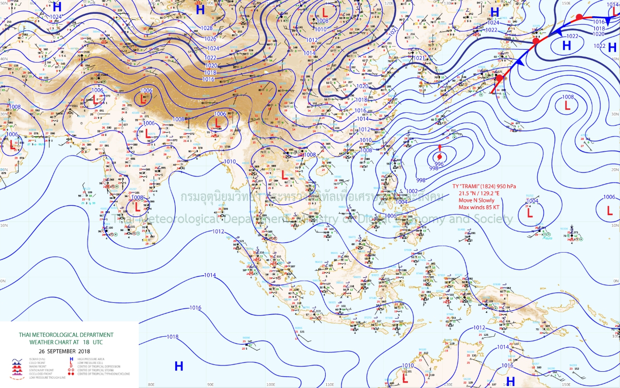 - ประเทศไทยตอนบนมีปริมาณฝนน้อย ส่วนภาคใต้ ยังคงมีฝนฟ้าคะนองเกิดขึ้นได้ในระยะนี้ ประมาณร้อยละ 40 ของพื้นที่ ขอให้ประชาชนบริเวณภาคใต้ ระวังอันตรายจากฝนที่ตกสะสมไว้ด้วย อนึ่ง พายุไต้ฝุ่น “จ่ามี” (TRAMI) บริเวณมหาสมุทรแปซิฟิก มีแนวโน้มเคลื่อนเข้าใกล้เกาะไต้หวันในช่วงวันที่ 28-29 กันยายน 2561 หลังจากนั้นจะเปลี่ยนทิศทางเคลื่อนเข้าประเทศญี่ปุ่นในวันที่ 30 กันยายน 2561 ขอให้ผู้ที่จะเดินทางไปบริเวณดังกล่าวตรวจสอบสภาพอากาศก่อนเดินทางด้วย โดยพายุนี้ไม่มีผลกระทบต่อประเทศไทย