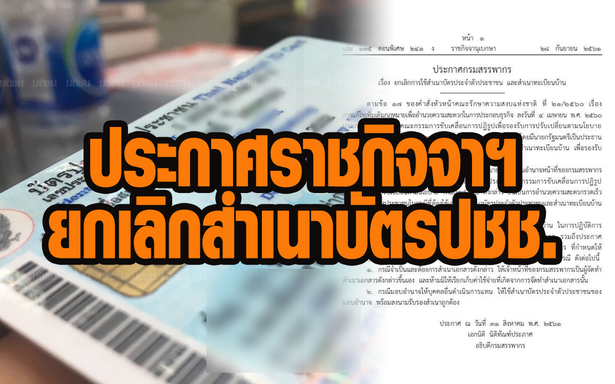 - ราชกิจจานุเบกษาเผยแพร่ ประกาศกรมสรรพากรเรื่อง ยกเลิกการใช้สำเนาบัตรประชาชน และสาเนาทะเบียนบ้าน หากจำเป็นต้องใช้สำเนาเอกสาร ห้ามเจ้าหน้าที่เรียกเก็บค่าใช้จ่าย