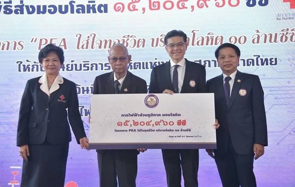 เมื่อวันที่ 8 ต.ค. 61 นายเสริมสกุล คล้ายแก้ว ผู้ว่าการการไฟฟ้าส่วนภูมิภาค (กฟภ.) เป็นประธานส่งมอบโลหิตภายใต้ โครงการ “PEA ใส่ใจทุกชีวิต บริจาคโลหิต 10 ล้านซีซี” ให้แก่สภากาชาดไทย โดยมีศาสตราจารย์กิตติคุณ นายแพทย์ศุภวัฒน์ ชุติวงศ์ ผู้ช่วยเลขาธิการสภากาชาดไทย และ นาวาโทหญิง แพทย์หญิงอุบลวัณณ์ จรูญเรืองฤทธิ์ ผู้อำนวยการศูนย์บริการโลหิตแห่งชาติ สภากาชาดไทย เป็นผู้รับมอบ ทั้งนี้ กฟภ. ได้ดำเนินโครงการนี้มาอย่างต่อเนื่องเป็นประจำทุกปี เพื่อสนับสนุนโลหิตให้แก่สภากาชาดไทย รวมทั้งส่งเสริมด้านคุณธรรม จริยธรรม และการมีจิตสาธารณะแก่พนักงานและครอบครัว โดยในปี 2561 มียอดบริจาครวม 15,204,960 ล้านซีซี