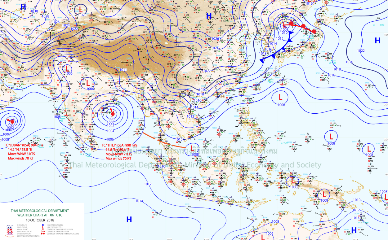 - ภาคเหนือ และภาคตะวันออกเฉียงเหนือมีอากาศเย็นในตอนเช้า อุณหภูมิจะลดลง 1-2 องศาเซลเซียส กับมีลมแรง ส่วนภาคกลางและภาคตะวันออกยังคงมีฟ้าคะนองได้ในระยะนี้ สำหรับภาคใต้มีฝนตกหนักบางแห่ง ขอให้ประชาชนบริเวณภาคใต้ตอนล่างระวังอันตรายจากฝนตกหนักและฝนที่ตกสะสมไว้ด้วย อนึ่ง พายุไซโคลน “ติตลี” (TITLI) บริเวณอ่าวเบงกอล มีแนวโน้มเคลื่อนตัวเข้าสู่ชายฝั่งด้านตะวันออกของประเทศอินเดีย และประเทศบังคลาเทศ ในช่วงวันที่ 11-13 ตุลาคม 2561 ขอให้ผู้ที่เดินทางไปบริเวณดังกล่าวตรวจสอบสภาพอากาศก่อนออกเดินทางด้วย