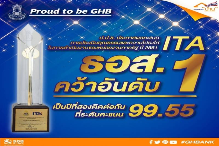 - นายฉัตรชัย ศิริไล กรรมการผู้จัดการธนาคารอาคารสงเคราะห์ (ธอส.) เปิดเผยว่าสำนักงานคณะกรรมการป้องกันและปราบปรามการทุจริตแห่งชาติ (ป.ป.ช.) ได้ประกาศผลคะแนนการประเมินคุณธรรมและความโปร่งใสในการดำเนินงานของหน่วยงานภาครัฐ (ไอทีเอ) ประจำปีงบประมาณ 2561 โดยผลปรากฏว่า ธอส. ได้รับคะแนนสูงสุด อันดับ 1 ที่ 99.55 คะแนน จากหน่วยงานภาครัฐที่เข้าร่วมการประเมินทั้งสิ้น 426 หน่วยงาน นอกจากนี้ธนาคารยังสามารถยกระดับคะแนนได้สูงขึ้นจากปี 60 ที่ได้ 97.97 คะแนน มาเป็น 99.55 คะแนน ซึ่งเป็นผลจากคณะกรรมการธนาคารและฝ่ายจัดการได้มีการกำหนดนโยบายให้มีการสื่อสารถ่ายทอดข้อมูลนำไปสู่การปฏิบัติ และติดตามผลที่ชัดเจน รวมถึงการมีส่วนร่วมของทั้งผู้บริหารและพนักงานทั่วทั้งองค์กร รวมถึงลูกค้า คู่ค้า คู่ความร่วมมือ หน่วยงานกำกับ จนเป็นวัฒนธรรมขององค์กร