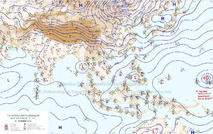 - ประกาศกรมอุตุนิยมวิทยา “พายุดีเปรสชัน” ฉบับที่ 7 ลงวันที่ 21 ตุลาคม 2561 เมื่อเวลา 10.00 น. ของวันที่ 21 ต.ค. 61 หย่อมความกดอากาศต่ำกำลังแรงที่อ่อนกำลังลงจากพายุดีเปรสชัน ได้เคลื่อนเข้ามาปกคลุมบริเวณอ่าวมะตะบัน ประเทศเมียนมาแล้ว ลักษณะเช่นนี้ทำให้ด้านตะวันตกของภาคเหนือ ภาคกลาง และทางตอนบนของภาคใต้ มีฝนตกหนักบางแห่ง ขอให้ประชาชนบริเวณดังกล่าวระวังอันตรายจากฝนตกหนักและฝนที่ตกสะสม ที่อาจทำให้เกิดน้ำท่วมฉับพลัน และน้ำป่าไหลหลากได้ โดยจะได้รับผลกระทบตามภาคต่างๆ ดังนี้ ภาคเหนือ จังหวัดแม่ฮ่องสอน เชียงใหม่ ลำพูน ลำปาง สุโขทัย กำแพงเพชร และตาก ภาคกลาง จังหวัดนครสวรรค์ ชัยนาท อุทัยธานี กาญจนบุรี สุพรรณบุรี นครปฐม ราชบุรี สมุทรสงคราม และสมุทรสาคร ภาคใต้ จังหวัดเพชรบุรี ประจวบคีรีขันธ์ และระนอง จึงขอให้ประชาชนติดตามประกาศจากกรมอุตุนิยมวิทยาอย่างใกล้ชิด และติดตามข้อมูลบนเว็บไซต์กรมอุตุนิยมวิทยา http://www.tmd.go.th หรือ สายด่วนพยากรณ์อากาศ 1182 ได้ตลอด 24 ชั่วโมง ประกาศ ณ วันที่ 21 ตุลาคม พ.ศ. 2561 เวลา 11.00 น. กรมอุตุนิยมวิทยาจะออกประกาศฉบับนี้เป็นฉบับสุดท้ายของเหตุการณ์นี้