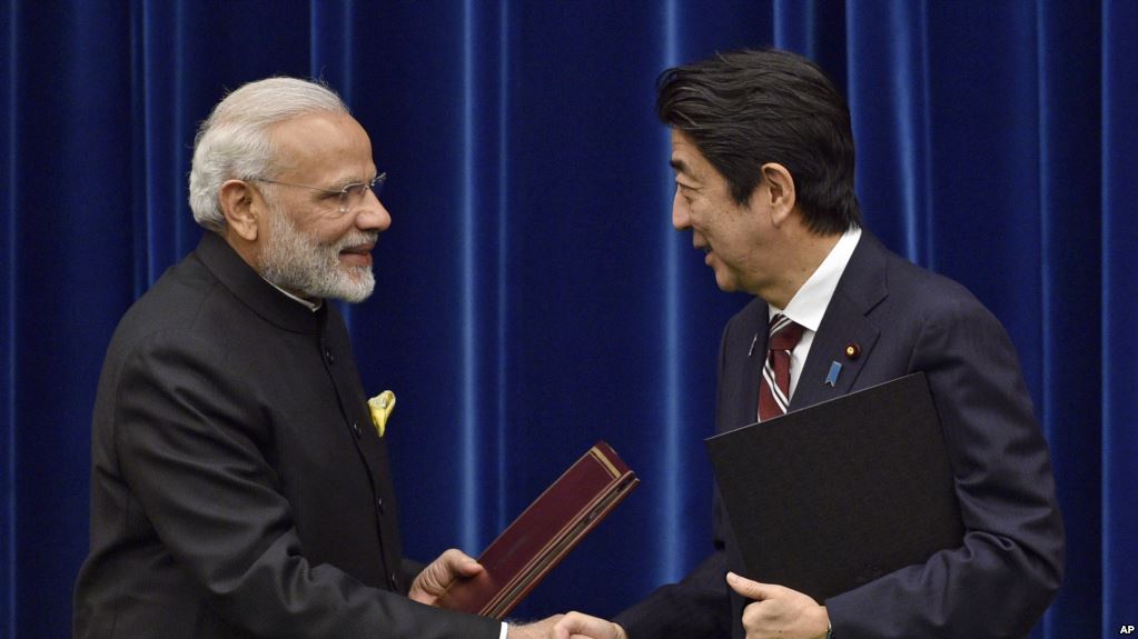 – นายกรัฐมนตรีนเรนทรา โมดี ของอินเดีย ได้เข้าพบนายกรัฐมนตรีชินโซ อาเบะ ของญี่ปุ่นระหว่างการเยือนอย่างเป็นทางการในสุดสัปดาห์ที่ผ่านมา โดยทั้งสองประเทศตกลงที่จะเตรียมซ้อมรบทางบกร่วมกันเป็นครั้งแรกในเดือนหน้า ซึ่งถูกมองว่าเป็นการถ่วงดุลอิทธิพลในภูมิภาคและตอบโต้การแผ่แสนยานุภาพทางทหารของจีน