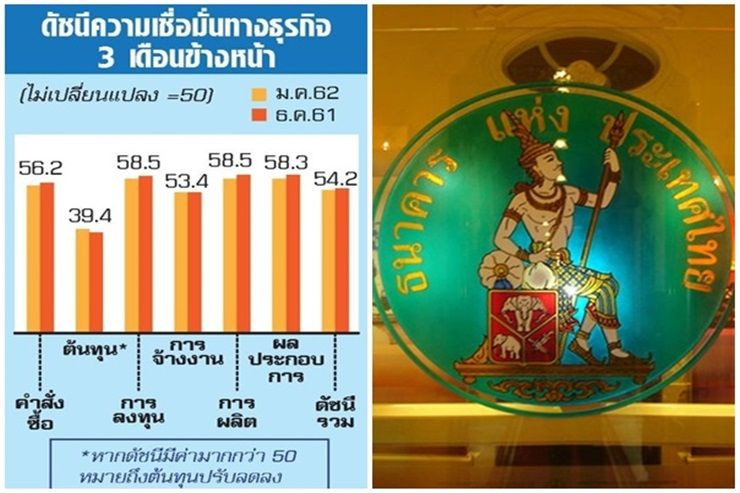- ธปท. เปิดเผยว่า ดัชนีเชื่อมั่นทางธุรกิจในเดือน ต.ค. 2561 อยู่ที่ระดับ 49.6 ปรับลดลงจากเดือนก่อน จากความเชื่อมั่นของผู้ประกอบการในภาคการผลิต ที่ลดลงเป็นสำคัญ ซึ่งเป็นการปรับลดลงในเกือบทุกองค์ประกอบยกเว้นด้านต้นทุน โดยเฉพาะกลุ่มผู้ผลิตเพื่อส่งออกที่มีความเชื่อมั่นด้านคำสั่งซื้อ ปริมาณการผลิต และ ผลประกอบการลดลง โดยเฉพาะกลุ่ม ผู้ผลิตอาหารและเครื่องดื่มที่มีความ เชื่อมั่นด้านคำสั่งซื้อทั้งในและต่างประเทศลดลงมาก อย่างไรก็ดี ความเชื่อมั่นในด้านต้นทุนปรับดีขึ้น โดยเฉพาะในกลุ่มผู้ผลิตเหล็กและผลิตภัณฑ์โลหะขั้นมูลฐาน ส่วนหนึ่งเป็นผลดีจากสงครามการค้าที่ส่งผลให้ราคาสินค้าโภคภัณฑ์หมวดโลหะลดลง สำหรับความเชื่อมั่นของผู้ประกอบการในภาคที่มิใช่การผลิต ดัชนีฯ ยังคงอยู่เหนือระดับ 50 สะท้อนว่าผู้ประกอบการส่วนใหญ่ยังมีความเชื่อมั่นต่อเศรษฐกิจที่ดีขึ้นจากเดือนก่อน
