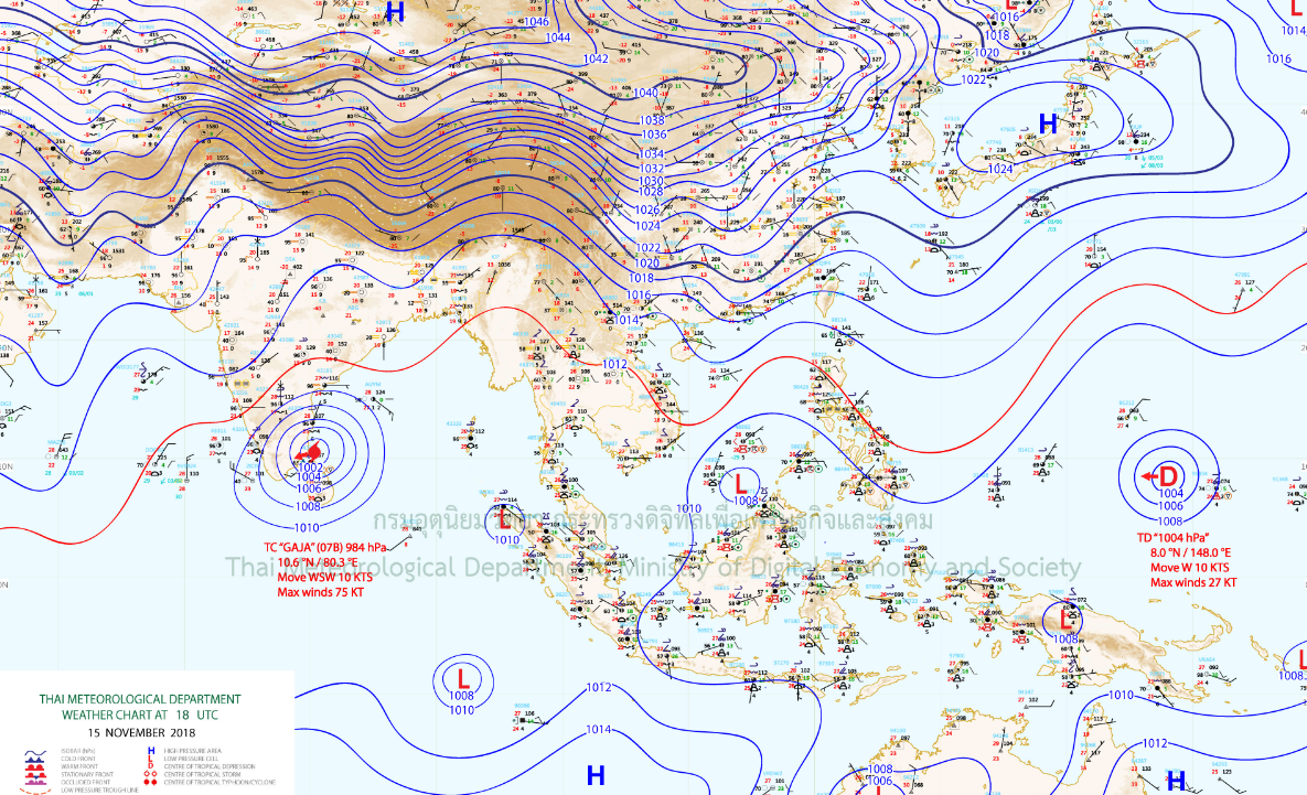 - ภาคเหนือ อากาศเย็นในตอนเช้า โดยมีฝนฟ้าคะนอง ร้อยละ 10 ของพื้นที่ ส่วนมากบริเวณจังหวัดเชียงใหม่ เชียงราย ลำพูน ลำปาง พะเยา และตาก อุณหภูมิต่ำสุด 21-23 องศาเซลเซียส อุณหภูมิสูงสุด 32-35 องศาเซลเซียส ภาคตะวันออก มีเมฆเป็นส่วนมาก กับมีฝนฟ้าคะนอง ร้อยละ 20 ของพื้นที่ ส่วนมากบริเวณจังหวัดชลบุรี ระยอง จันทบุรี และตราด อุณหภูมิต่ำสุด 24-26 องศาเซลเซียส อุณหภูมิสูงสุด 32-35 องศาเซลเซียส ภาคใต้ มีเมฆเป็นส่วนมาก กับมีฝนฟ้าคะนอง ร้อยละ 60 ของพื้นที่ ส่วนมากบริเวณจังหวัดสุราษฎร์ธานี นครศรีธรรมราช พัทลุง สงขลา ปัตตานี ยะลา และนราธิวาส อุณหภูมิต่ำสุด 23-25 องศาเซลเซียส อุณหภูมิสูงสุด 27-33 องศาเซลเซียส ภาคกลาง มีเมฆบางส่วน กับมีฝนฟ้าคะนอง ร้อยละ 10 ของพื้นที่ ส่วนมากบริเวณจังหวัดนครสวรรค์ อุทัยธานี และชัยนาท อุณหภูมิต่ำสุด 23-26 องศาเซลเซียส อุณหภูมิสูงสุด 33-36 องศาเซลเซียส กรุงเทพฯ และปริมณฑล มีเมฆเป็นส่วนมาก กับมีฝนฟ้าคะนอง ร้อยละ 20 ของพื้นที่ อุณหภูมิต่ำสุด 24-26 องศาเซลเซียส อุณหภูมิสูงสุด 34-36 องศาเซลเซียส