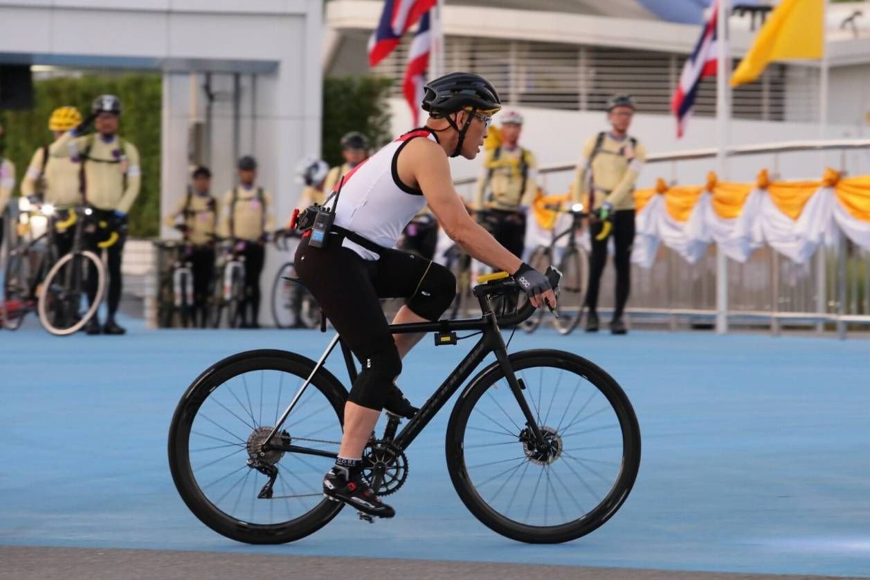 - ต่อมาในเวลา 17.09 น. สมเด็จพระเจ้าอยู่หัวเสด็จพระราชดำเนินไปทรงเปิดสนามลู่ปั่นจักรยาน “เจริญสุขมงคลจิต” ณ สนามลู่ปั่นจักรยานบริเวณท่าอากาศยานสุวรรณภูมิ อ.บางพลี จ.สมุทรปราการ ทั้งนี้ สนามลู่ปั่นจักรยาน “เจริญสุขมงคลจิต” หรือชื่อภาษาอังกฤษ “HAPPY AND HEALTHY BIKE LANE” เป็นชื่อที่สมเด็จพระเจ้าอยู่หัวทรงพระกรุณาโปรดเกล้าโปรดกระหม่อมพระราชทานชื่อ โดยมีระยะทางรวมทั้งสิ้น 23.5 กม. ประกอบด้วย ลู่ปั่นจักรยานหลักสีฟ้าสำหรับนักปั่นทั่วไปและสีม่วงสำหรับนักปั่นที่มีประสบการณ์ ระดับมาตรฐานโลกระยะทาง 23.5 กม. ลู่ปั่นจักรยานระยะสั้น ระยะทาง 1.6 กม. ลู่วิ่งมาตรฐานระดับโลกคู่ขนานกับลู่ปั่นจักรยานระยะสั้น 1.6 กม. และลู่ปั่นจักรยานสำหรับเด็ก นอกจากนี้โครงการยังได้สร้างสิ่งอำนวยความสะดวกต่าง ๆ ประกอบด้วย ลานจอดรถที่ทันสมัยมีระบบรักษาความปลอดภัยที่ได้มาตรฐาน สะพานเชื่อมลานจอดรถยนต์ระยะยาวระยะทาง 1.2 กม. ศูนย์พยาบาลฉุกเฉิน บริการร้านจำหน่ายและให้เช่าจักรยาน ร้านอุปกรณ์จักรยาน ร้านอาหารและเครื่องดื่ม เพื่อรองรับความต้องการของนักปั่นและประชาชนทั่วไปอย่างทั่วถึง โดยมีวัตถุประสงค์เพื่อส่งเสริมให้ประชาชนตระหนักในความสำคัญของการออกกำลังกายและดูแลสุขภาพ อีกทั้งเป็นการสนับสนุนกิจกรรมที่ดีต่อสิ่งแวดล้อมและสังคม โดยสนามลู่ปั่นจักรยานฯ จะจัดกิจกรรมอย่างต่อเนื่อง ซึ่งประชาชนและนักปั่นสามารถเข้ามาใช้บริการของสนามลู่ปั่นจักรยานโดยไม่ต้องเสียค่าใช้จ่ายแต่อย่างใด โดยเปิดให้บริการเป็นประจำทุกวัน ตั้งแต่เวลา 06.00 – 21.00 น.