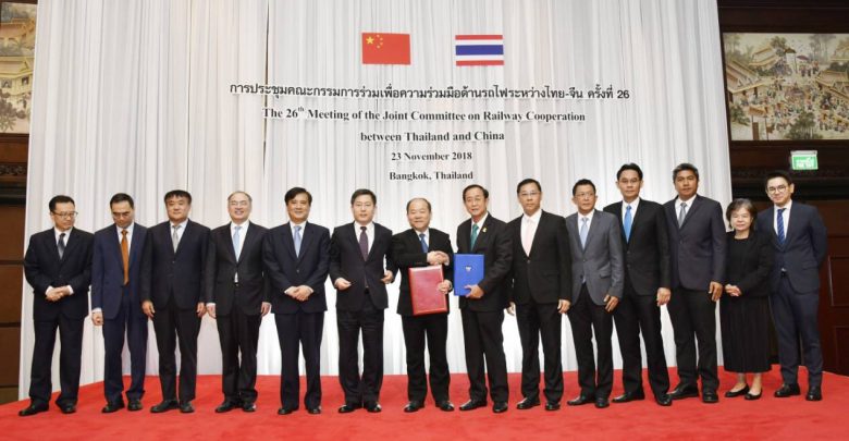 - นายอาคมฯ รมว.คค. เปิดเผยภายหลังประชุมความร่วมมือด้านรถไฟระหว่างไทย – จีน ครั้งที่ 26 เมื่อวันที่ 23 พ.ย. 61 ณ รร.แชง กรี-ลา โดยระบุว่า การประชุมครั้งนี้มีความคืบหน้าเกี่บวกับข้อตกลงหลายส่วน ดังนี้ 1) ทั้งสองฝ่ายรับทราบความก้าวหน้าการดำเนินการประกวดราคาช่วงสีคิ้ว – กุดจิก ระยะทาง 11 กม. ของโครงการรถไฟไทย – จีน ซึ่งขณะนี้อยู่ระหว่างขั้นตอนการประกวดราคาของฝ่ายไทย โดยคาดว่าจะเริ่มการก่อสร้างภายในปี 62 2) เห็นชอบร่วมกันในหลักการของสัญญา 2.3 (สัญญาการวางราง และระบบการเดินรถ ระบบอาณัติสัญญาณ พร้อมขบวนรถ) เพื่อแก้ไขประเด็นที่คงค้างให้สามารถลงนามสัญญา 2.3 ได้ภายในปลายเดือน ม.ค. 62 3) การดำเนินโครงการระยะที่ 2 เส้นทางนครราชสีมา – หนองคาย เริ่มภายในปี 62 โดยฝ่ายไทยจะเป็นผู้ดำเนินการออกแบบรายละเอียดงานโยธา 4) เห็นชอบในหลักการร่วมกันเกี่ยวกับการฝึกอบรมเพื่อถ่ายทอดความรู้ให้บุคลากรฝ่ายไทย ประมาณ 900 คน โดยฝ่ายไทยขอให้ฝ่ายจีนเตรียมคู่มือสำหรับการเดินรถและการซ่อมบำรุงรถไฟความเร็วสูงเพื่อให้มีความเหมาะสมกับเงื่อนไขและสภาพแวดล้อมการเดินรถในไทย และ 5) ทั้งสองฝ่ายเห็นชอบร่วมกันในการเพิ่มขีดความสามารถด้านการทดสอบชิ้นส่วนรถไฟความเร็วสูง ซึ่งเป็นส่วนหนึ่งของแผนการถ่ายทอดเทคโนโลยีเกี่ยวกับรถไฟความเร็วสูง