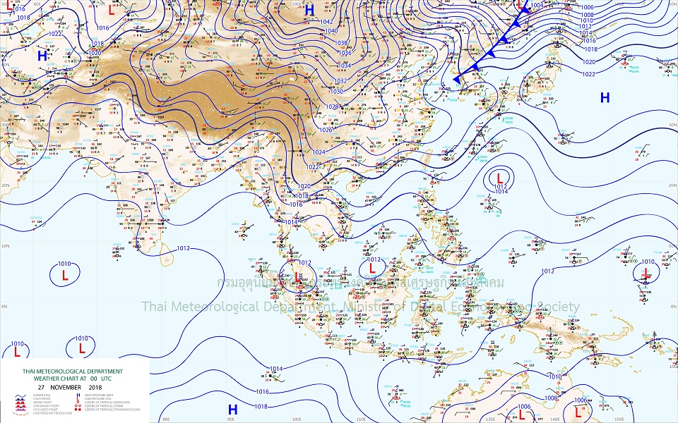 - ประเทศไทยตอนบนอากาศเย็นถึงหนาวกับมีลมแรง อุณหภูมิจะลดลง 2-4 องศาเซลเซียสในภาคเหนือ ส่วนภาคตะวันออกเฉียงเหนือ ภาคกลาง ภาคตะวันออก รวมทั้งกรุงเทพมหานครและปริมณฑลอุณหภูมิจะลดลง 1-3 องศาเซลเซียส โดยมีฝนเล็กน้อยบางแห่งบริเวณภาคตะวันออกเฉียงเหนือ และภาคตะวันออก สำหรับบริเวณยอดดอยมีอากาศหนาวถึงหนาวจัดกับมีน้ำค้างแข็งบางพื้นที่ ขอให้ประชาชนบริเวณภาคเหนือดูและสุขภาพเนื่องจากสภาพอากาศที่หนาวเย็นลงด้วย สำหรับภาคใต้มีฝนเพิ่มขึ้น ส่วนบริเวณอ่าวไทยตอนบนมีคลื่นสูงประมาณ 2 เมตร ขอให้ชาวเรือบริเวณดังกล่าวเดินเรือด้วยความระมัดระวัง