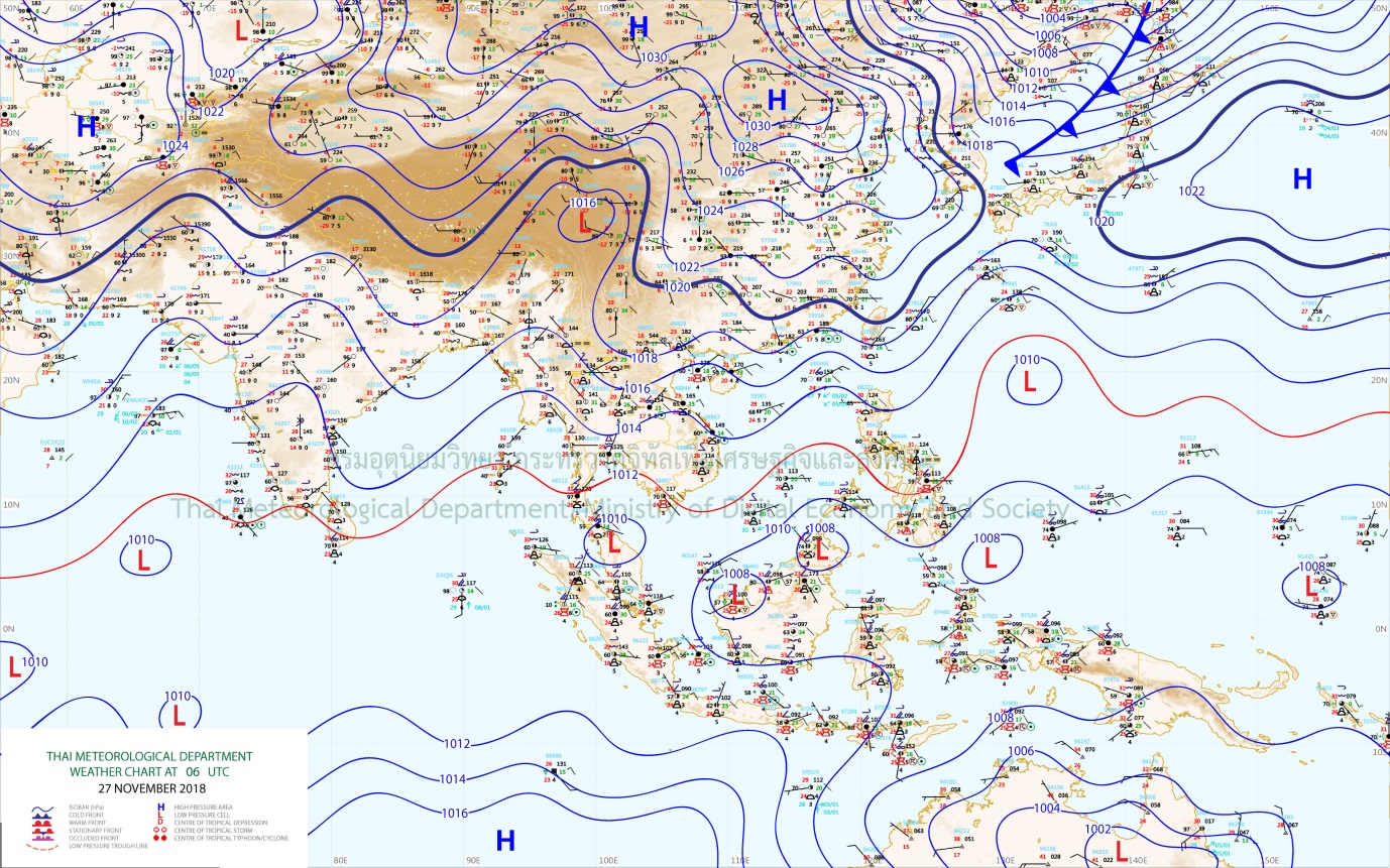 - ประเทศไทยตอนบนอากาศเย็นถึงหนาวกับมีลมแรง อุณหภูมิจะลดลง 2-4 องศาเซลเซียสในภาคเหนือ ส่วนภาคตะวันออกเฉียงเหนือ ภาคกลาง ภาคตะวันออก รวมทั้ง กทม. และปริมณฑลอุณหภูมิจะลดลง 1-3 องศาเซลเซียส โดยมีฝนเล็กน้อยบางแห่งบริเวณภาคตะวันออกเฉียงเหนือ ภาคตะวันออก รวมทั้ง กทม. และปริมณฑล บริเวณยอดดอยมีอากาศหนาวถึงหนาวจัดกับมีน้ำค้างแข็งบางพื้นที่ ภาคใต้มีฝนเพิ่มขึ้น ส่วนบริเวณอ่าวไทยตอนบนมีคลื่นสูงประมาณ 2 เมตร