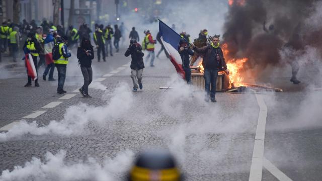 - เมื่อวันที่ 8 ธ.ค. 61 สำนักข่าวต่างประเทศรายงาน รัฐบาลประธานาธิบดีเอ็มมานูเอล มาครงแห่งฝรั่งเศส เผชิญแรงกดดันจากม็อบ “เสื้อกั๊กเหลือง” ออกมาชุมนุมประท้วงเดือดในกรุงปารีส ในวันเสาร์ที่ 8 ธ.ค. ซึ่งนับเป็นวันเสาร์สัปดาห์ที่ 4 ติดต่อกันแล้ว มีฝูงชนกว่า 5,000 คน นำโดยม็อบเสื้อกั๊กเหลืองได้ออกมาชุมนุมประท้วงปัญหาค่าครองชีพสูงและคัดค้านการขึ้นภาษีอยู่ที่บริเวณใจกลางกรุงปารีส ท่ามกลางสถานการณ์ประท้วงที่ตึงเครียดก็เกิดการเผชิญหน้ากันระหว่างม็อบผู้ประท้วงกับตำรวจที่ถึงขั้นต้องยิงแก๊สน้ำตาและฉีดน้ำสลายฝูงชนที่ชุมนุมประท้วง ขณะที่มีรายงานว่าตำรวจได้จับกุมผู้ชุมนุมที่ก่อความรุนแรงได้กว่า 700 คน