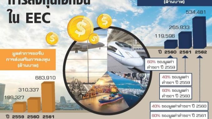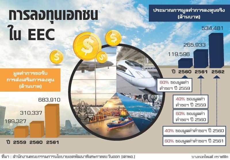 - เลขาธิการคณะกรรมการนโยบายเขตพัฒนาพิเศษภาคตะวันออก (สกพอ.) กล่าวปาฐกถาพิเศษ “เศรษฐกิจไทยกับการลงทุนในอีอีซี” ในงานสัมมนาใหญ่ประจำปี 2561 ของสมาคม ผู้สื่อข่าวเศรษฐกิจ ว่า ปีนี้จะเห็นการลงทุนของภาคเอกชนชัดเจนขึ้นในพื้นที่อีอีซี ซึ่งที่ผ่านมาเห็นแนวโน้มการขยายตัวของการลงทุนเอกชนเพิ่มขึ้นต่อเนื่อง ปี 2561 เพิ่มขึ้น 3.1% เศรษฐกิจโลกอยู่ในภาวะที่อัตราการขยายตัวทางเศรษฐกิจอยู่ที่ประมาณ 3% แต่ไทยทำได้มากกว่า ซึ่งปีนี้หากแผนการลงทุนอีอีซีทำได้ตามเป้า เศรษฐกิจไทยจะเติบโตไม่น้อยกว่า 4% หรืออาจจะถึง 5% หากภาคเอกชนลงทุนต่อเนื่อง